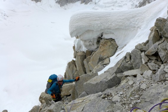 Po postavitvi baze in dnevu oddiha smo začeli s prvimi aklimatizacijskimi vzponi. Vreme je bilo izredno toplo z ničlo izotermo na 6500 metrih, zato smo opustili misel na vzpone v snežnih pobočjih in raje začeli oprezati za varnimi linijami. Že ko dostopaš proti bazi, se ti prva izmed mnogih impozantnih sten na ledeniku Choktoi prikaže stena severnega stolpa Biacherahi (6050 m), ki spominja na plavut morskega psa. Ko sva z Luko Lindičem izvedela, da njen levi steber še ni preplezan, nisva potrebovala dosti usklajevanja, da sva si našla cilj, ki naju je motiviral. V soju čelnih svetilk sva zaplezala v snežni kuloar in po nekaj urah prišla na sedlo pod skalnim delom stene, kjer sva preživela celoten dan. Aluminijasta folija, ki sva jo uporabila za prekrivanje šotora, se je izkazala za odlično rešitev, saj nama je temperatura v šotoru na 5500 m z vročih 28 padla na znosnih 22 stopinj. Naslednje jutro sva s prvo svetlobo zaplezala v skalni del smeri. Pričakovala sva vsaj kakšen klin ali sidrišče od morebitnih preteklih poskusov, a na najino pozitivno presenečenje nisva našla ničesar. Stena je postregla z lepimi prehodi v večinoma dobri skali z nekaj izstopajočimi raztežaji v smislu naloženosti. Konstantna plezarija v kombinaciji z neaklimatiziranostjo naju je zaposlila za dobršen del dneva. Pri spustu ob vrvi sva porabila še zadnje ure svetlobe, potem pa nama ja zataknjena vrv popestrila sestop in okoli enih ponoči sva z nekaj domišljije in 20 metrov vrvi, kolikor jo je ostalo od začetnih 120 metrov, le prišla nazaj do šotora na sedlu. Martin in Janez sta medtem dostopila do sedla pod Choktoi spire in tam prespala. Naslednje jutro sta začela vzpon po zahodnem grebenu in po celem dnevu plezanja ugotovila, da je glavni vrh zaradi mnogo vzponov in spustov dlje, kot sta pričakovala, zato sta turo končala na enem izmed predvrhov, kjer sta še enkrat prespala in naslednji dan sestopila v bazo.
