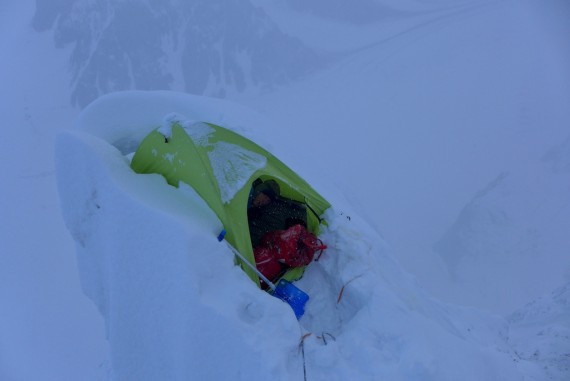 Po počitku smo pretehtali možnosti in skovali načrt za preostalih sedem dni, ki nam jih je ostalo do prihoda nosačev. Kyle je zaradi drugačnosti ciljev odšel domov, Martin in Janez sta se odločila za skalno plezanje v okolici baze, midva z Lukom pa sva se s pomočjo šotora, ki sta nama ga velikodušno odstopila Martin in Janez, odločila, da še enkrat poskusiva v razu Latoka 1. Vremenska napoved je bila relativno dobra, prednost poznanega terena pa se je še kako poznala, zato je plezanje teklo gladkeje in racionalneje. Po prvem bivaku na 5000 metrih sva nadaljevala do vrha skalne stopnje in zaplezala v snežni del, ki naju je pričakal v odličnih razmerah. Drugič sva bivakirala na 5400 metrih, kjer sva našla dobro mesto za šotor. Tudi naslednji dan so stvari tekle gladko, dokler naju okoli poldneva niso obiskale prve snežinke. Nisva se pustila motiti, rekoč "saj bo samo plohica", in v vedno močnejšem sneženju plezala dalje. Bližala se je noč, a mesta za dober bivak ni bilo nikjer na vidiku, "plohica" pa se je razvila v močno sneženje. Naposled sva se zadovoljila s ponujenim in snežni gobi na grebenu na 5900 metrih odsekala vrh, ki je ponudil ravno dovolj prostora za najin šotorček. Utrujena sva popadala v spalki in upala, da se prebudiva v lepše vreme. A žal zjutraj vreme ni bilo dosti boljše, med nočjo pa je zapadlo 20 centimetrov snega. Vedela sva, da je za ta dan napoved malo slabša, hrane in plina pa sva imela dovolj, zato sva se odločila, da počakava in nadaljujeva naslednji dan, ko bi naj sledilo hitro izboljšanje. A sneženju ni bilo videti konca in v peto jutro sva se prebudila v močnem sneženju, svežega snega pa je bilo že skoraj pol metra. Med še enim dnevom čakanja je sneg počasi odnesel še zadnje upe o nadaljevanju, zato sva se odločila, da še po tretjem bivaku na istem mestu sestopiva v dolino. Posledica te odločitve je bila tudi ta, da sva lahko zdaj jedla in pila, kolikor sva hotela, saj sva imela hrane še za štiri dni, med čakanjem pa sva porabo zmanjšala na minimum. Šesto jutro je bilo novozapadlega snega že skoraj en meter, naju pa je čakal sestop čez vseh 38 raztežajev, ki sva jih preplezala, medtem pa je sneg še vedno vztrajno naletaval. Po vseh spustih sva izkopala pod steno puščene palice in sestopila v bazo.