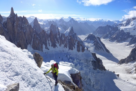 Plezanje nad pakistanskim ledenikom Choktoi, kjer je še ogromno plezalnega potenciala. (foto Luka Krajnc)