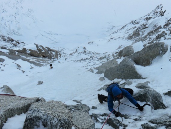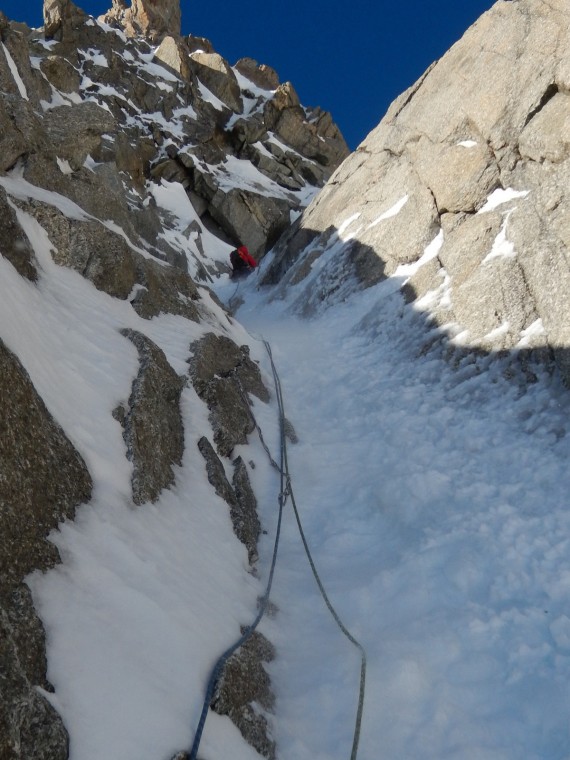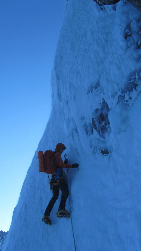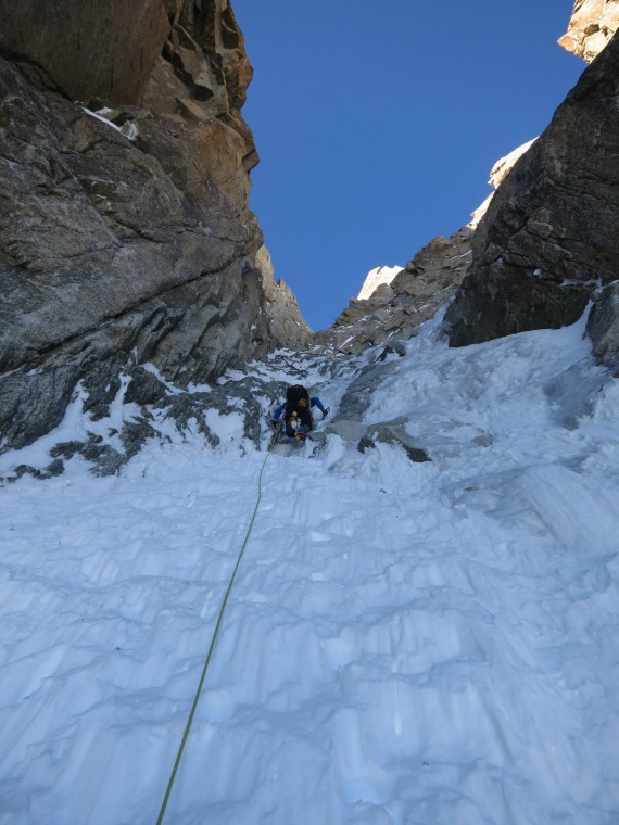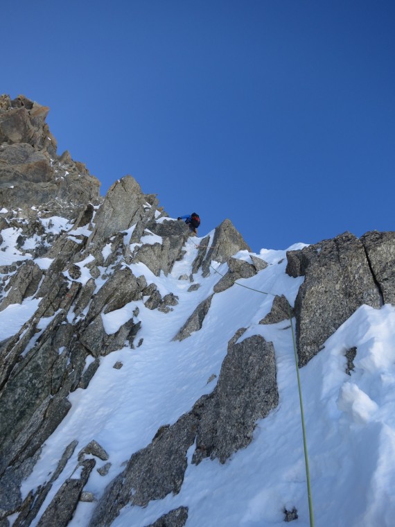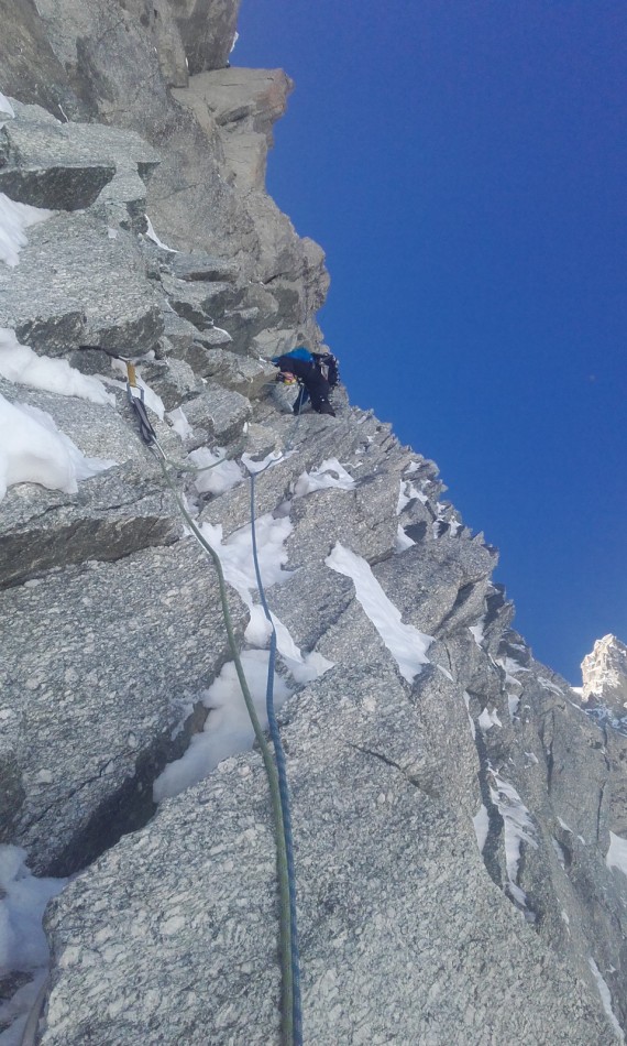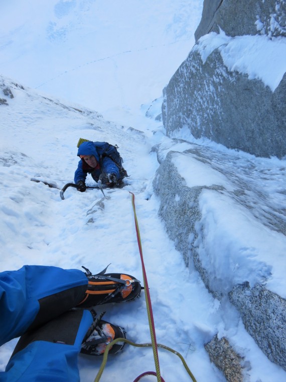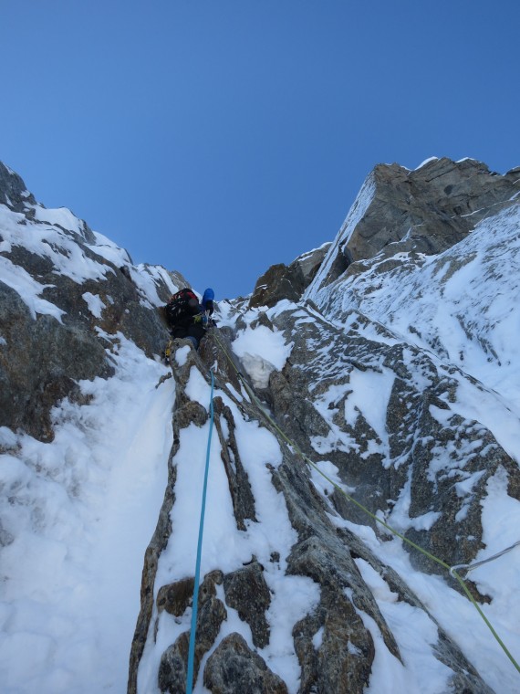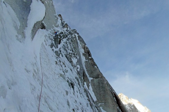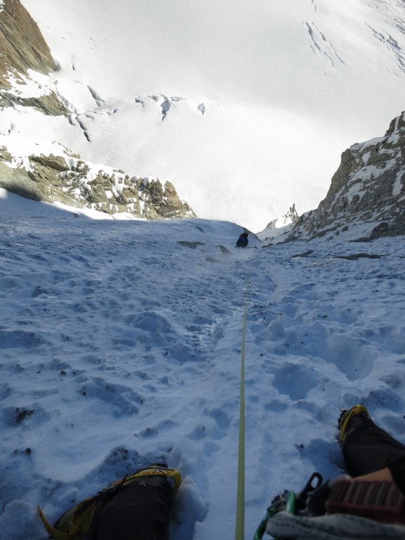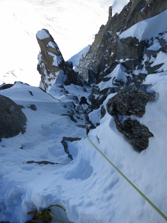 Med 3. in 4. uro zjutraj vsi zapustijo bivak in dostopijo pod izbrane smeri. Arh in Močnik izplezata še isti dan ter sestopita na drugo stran in bivakirata v bližini bivaka Couvercle, ki ga v temi nista uspela najti. Bajec in Košir preplezata dobrih 8 raztežajev smeri v solidnih razmerah. Na sedlu pod najtežjimi raztežaji ju pozdravita popolnoma nepredelan sneg in porozen led, zato se odločita za povratek. V dobrih 2 urah sta s spusti po vrvi nazaj pod steno in se vrneta v bivak, kjer prespita. Tomplak in Kozole ter Jež in Demšar bivakirajo na sestopu z Droatov.
