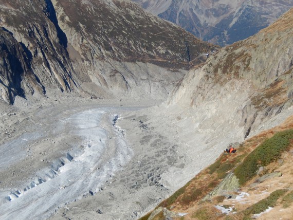 Večina nas odide v hribe. Marčič in Gerbec se odpeljeta na Montenvers, za cilj sta si izbrala smer Merkel-Welzenbach v Grands Charmoz. V smeri ju pričakajo precej slabe razmere, a se ne predata zlahka. Po dveh raztežajih težkega in mestoma nevarnega plezanja se le odločita za vrnitev. Željna plezanja poskusita še v smeri Bouchard – Zajchowski, a ju tudi tu ustavijo zelo slabe razmere, zato se ponovno odločita za umik in sestop v dolino. Ker imata rada dolge sprehode pod zvezdnatim nebom, se odločita za nočno kolovratenje po tirih vse do toplih postelj hostla. Grilj in Klemenčič po naporni nočni vožnji nabirata moči v hostlu in zabavata lokalne može postave.