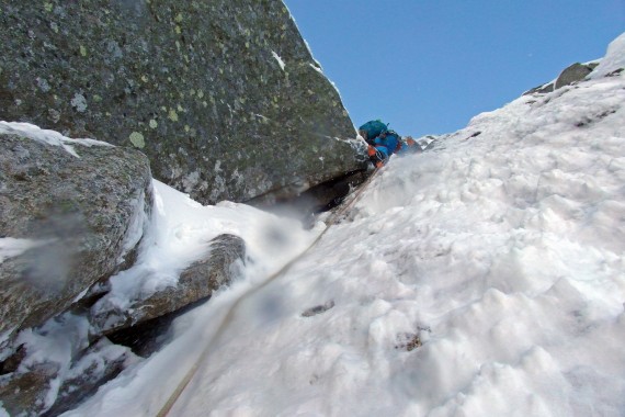 Marčič, Gerbec, Klemenčič in Grilj dostopijo pod Les Droites, za cilj si izberejo smer Ginat.