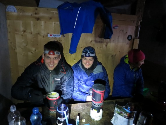 Les Droites. Na bivaku so po dobrih 5 urah in pol hoje. Bajec in Košir si za