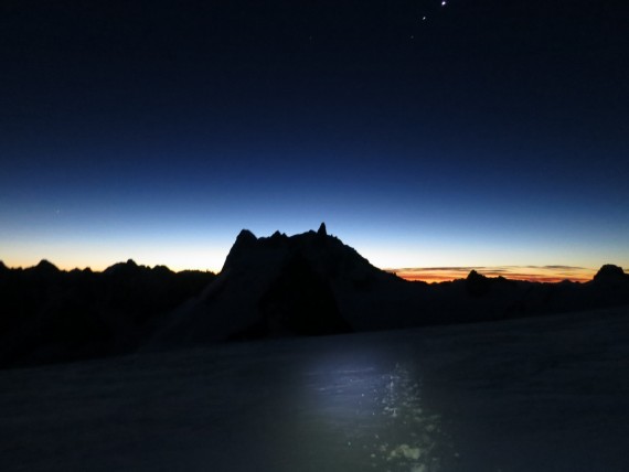 Močnik, Arh, Bajec in Košir gredo z zadnjo gondolo na Aiguille du Midi, kjer jih pričaka mrzlo, vetrovno in megleno vreme. Prespijo v bivaku Abri Simond. Tomplak in Kozole sestopita v dolino, ravno tako Demšar in Jež.