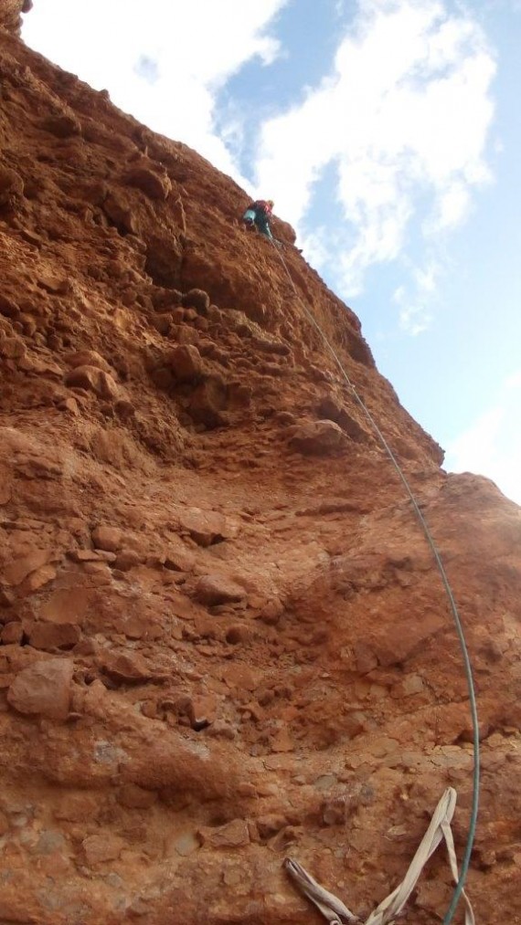 Ponedeljek, 21. 11. 2016: Razdelili smo se po navezah in si skušali izbrati čim bolj suhe smeri. Ker pa so tukaj konglomeratni stolpi, so bili izstopi iz smeri skoraj povsod zamočeni, zaradi česar nismo izplezali iz vseh smeri. Zaradi dežja in vetra, ki ga nosi v steno, nam previsi ne pomagajo prav dosti.