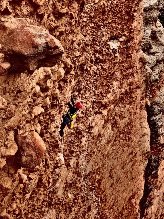 ANŽE: Plezanje v Riglosih je pustilo na meni poseben vtis. Najprej se moraš navaditi tovrstne plezarije po konglomeratu, saj imaš občutek, da ti bo vsak grif ostal v roki. Nekatere klasike so vidne že iz ovinkaste ceste na poti do sten, saj so grifi tako beli, da je videti kot, da bi bila linija prebarvana s cestarsko barvo. Plezali smo veliko raznolikih stvari, od 50 metrskih raztežajev po šalcah, pa do 10 metrske strehe na tehniko, v dežju, vetru in zadnjih par dni tudi v soncu. Riglosi so mi bila zelo dobra plezalna izkušnja v ambientalnem okolju.