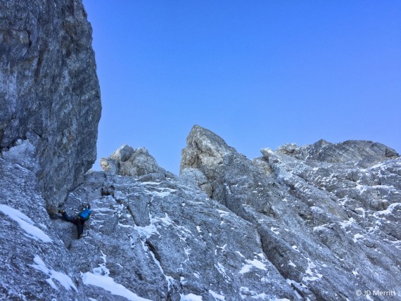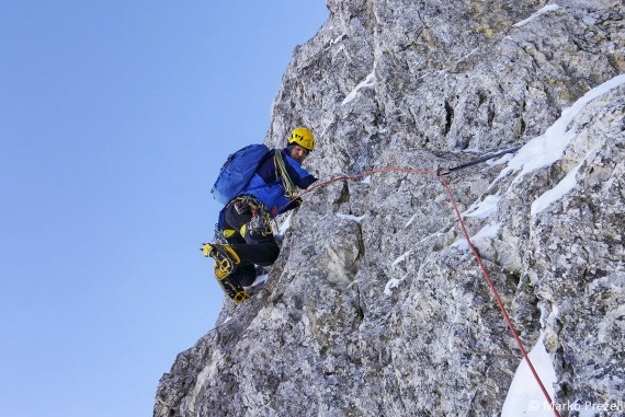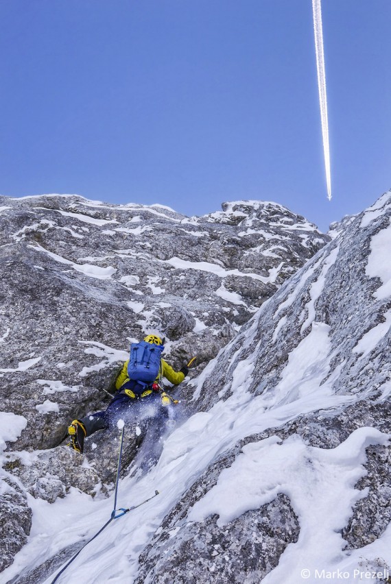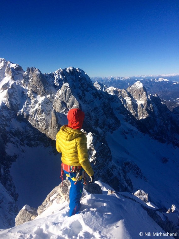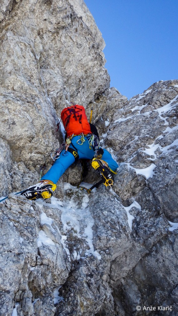 JD: "It was an honor to climb in your home range and experience the mountains that have helped so many great Slovenian alpinists develop and hone their skills. The limestone of the Julian alps is both beautiful and complex, and climbing there in difficult conditions and in the depth of winter proved to be a challenge and a worthy learning experience for us. The established routes here are impressive, and I was amazed by the potential for many more lines, both big and small. I hope to climb here again in the future, and I welcome you all to climb with us in America anytime. Thanks!"