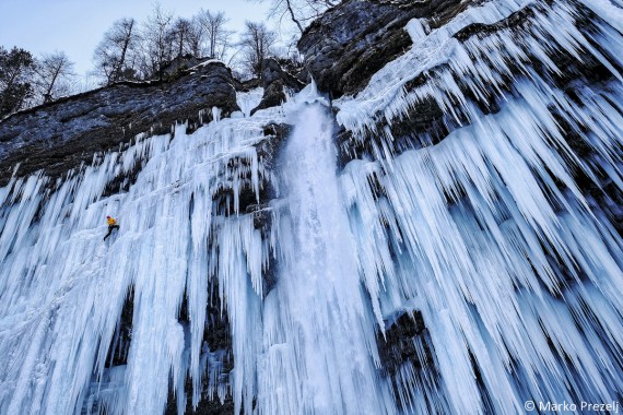 - Domen, Kurt, Erik: Krokarjev slap (WI5+, 100m)