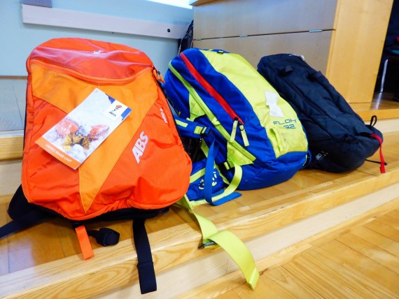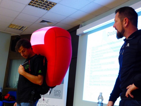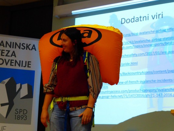 Zanimivo je bilo tudi zadnje predavanje Marka Šimenca o nahrbtnikih z zračnim balonom. Po uvodni predstavitvi so tri različne nahrbtnike sodelujoči lahko preizkusili tudi sami.