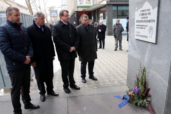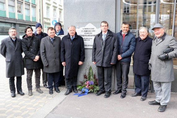 aranžmaja pri spominski plošči na pročelju blagovnice Nama v Ljubljani,