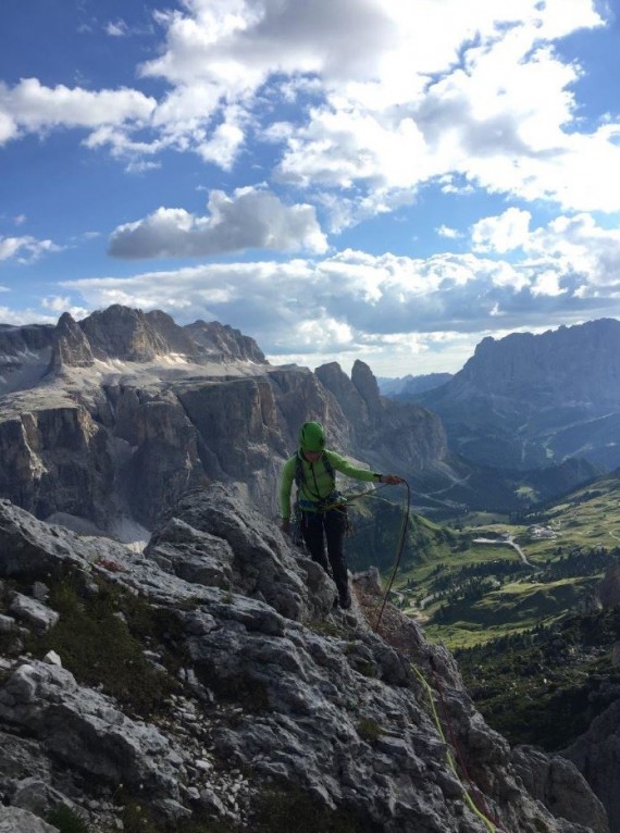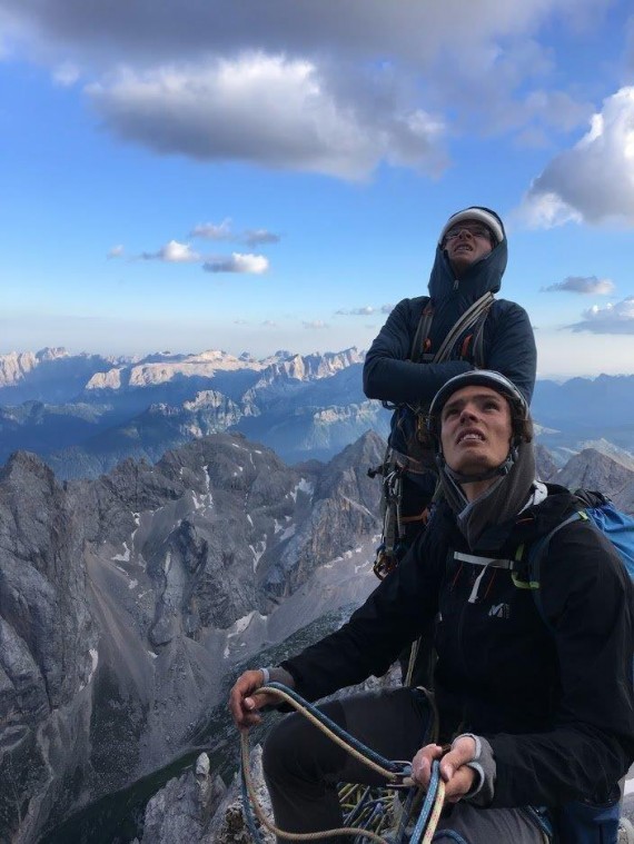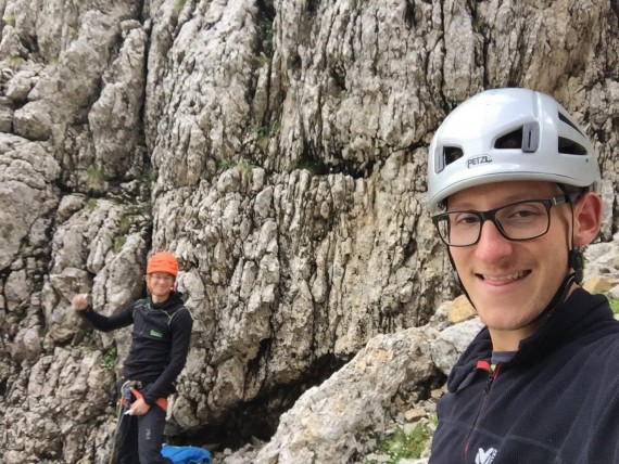 Lepa napoved in dobra ogretost je botrovala, da smo se v sredo tako rekoč vsi znašli v kraljici Dolomitov, južni steni Marmolade. Vem, da si je prav vsaka naveza morala vrh v svoji smeri krepko priboriti! In temu primerno široki so bili nasmehi in zanimive zgodbe po uspešnih vzponih. V četrtek si je večina vzela prislužen sončen rest day. Pod in v Marmoladi, pa še dan kasneje, sta našo družbo popestrila Gašper Pintar in njegov francoski soplezalec Mathieu Istas. Ob mednarodnem pridihu so mladci tako zaznali tudi nivo skalnega alpinističnega plezanja izven meja naše drobne domovine.