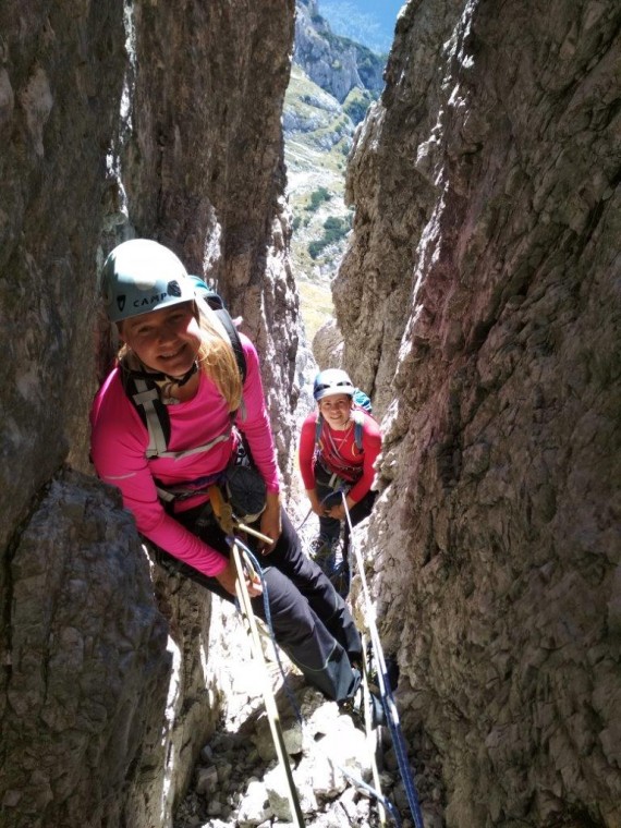 - Maja in Marta: Divja koza (Cima di Riofreddo): Veronica bonarota o via Bauer, III-IV+, ponekod V, 550 m