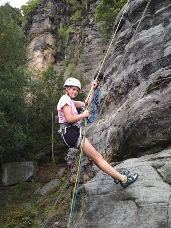 - Vita Dacar: Tabora na Češkem sem se zelo veselila, saj mi je potovanje in plezanje nekaj najboljšega. Malo me je skrbelo, kako vse bo, vendar je bilo odlično. Plezanje po peščenjaku je bilo zame nekaj povsem novega in bilo je super. Ko prideš na vrh in vidiš ta razgled, je noro. Spoznala sem polno novih ljudi in občutki so res dobri. Imela sem nekaj težav s hrano, ampak so bile na zalogi sladkarije, tako da se da :D Veselim se že novih taborov, na novih lokacijah in vesela bom, če bom lahko šla z vami in če bom srečala koga od teh udeležencev. Doživetja in spomini so nekaj, kar ti ostane za vedno in bogati tvoje življenje. Hvala vsem za vse in še posebej Barbari.