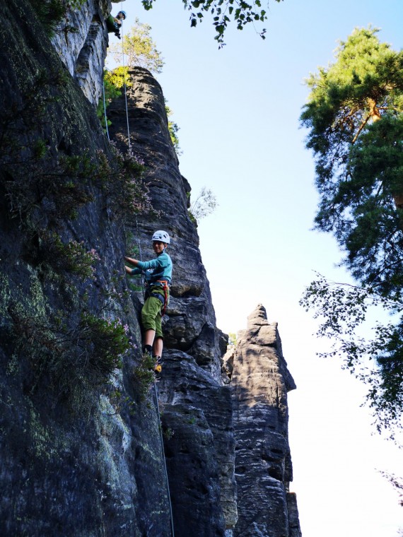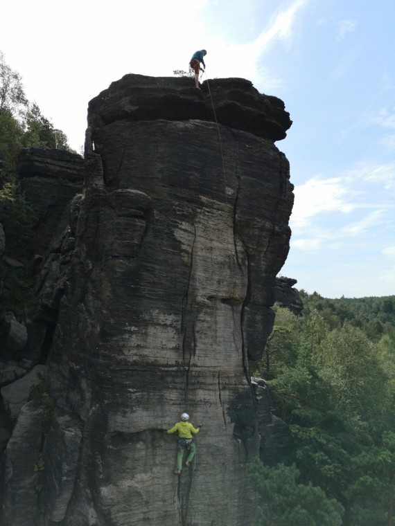 Kaj je skupno sosednjima nacionalnima parkoma Saška Švica (Sächsische Schweiz) in Češka Švica (Národní park České Švýcarsko)? Vsaj to, da nista niti blizu Švice in da ju oba krasijo temni stolpi iz peščenjaka. Čudoviti na pogled, zanimivi na dotik in nevarni za plezanje. Letos se je ponudila ponudila odlična priložnost, da z Mladinsko komisijo PZS obiščemo to deželo stolpov na češki strani meje. Poleg mene je slovensko ekipo sestavljalo sedem zagnanih mladih in Blaž, s katerim sva jih (dokaj) uspešno krotila.