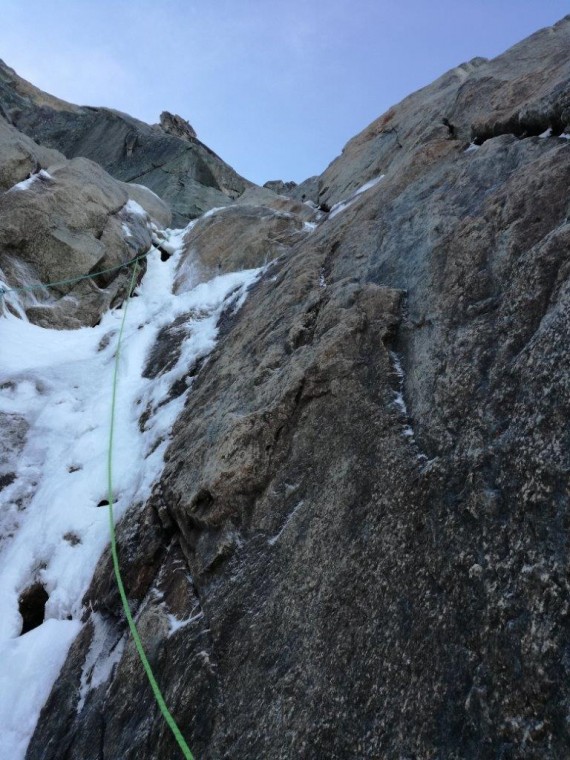 Letošnji zimski tabor v Chamonixu je zaznamovalo predvsem slabo vreme, kar je botrovalo tudi temu, da smo ga prestavili za en teden v upanju na lepše vreme. Ampak to je bil račun brez krčmarja. Napoved je bila iz dneva v dan pestrejša, a smo se v soboto vseeno dobili v hostlu. Naslednji dan se je obetalo stabilno vreme, zato smo kaj hitro sestavili naveze in izbrali cilje. Tako smo v nedeljo zjutraj vsi odrinili proti hribom. Dobra polovica ekipe je vstopila v stene pod Midijem, ostali pa so se sprehodili proti ledeniku Argentiere. Dan je minil v relativno lepem vremenu, ki pa se je zvečer pokvarilo. Pričelo je precej pihati in rahlo snežiti. Marčič, Štrancar in Fortuna so na bivaku, nad skalnimi raztežaji v smeri Frendo, preživelio precej neugodno in mokro noč, zato so naslednji dan v zelo slabem vremenu le še sestopili do Midija. Jakob in Anja sta se tudi borila z vetrom in meglo na izstopu iz smeri Fil a Plomb. Pintar in Aničin sta bivakirala na sestopu, Karner in Kristan sta prenočila v koči. Do poznega popoldneva smo se vsi nastanili v hostlu in že začeli z načrtovanjem nadaljnjih podvigov.