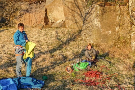 Z Davidom sva v Bohuslänu preživela 14 dni, ki sva jih, z odličnim sodelovanjem vremenskih bogov, maksimalno izkoristila, saj sva plezala skoraj vse dni. Za teden dni sta se nama pridružila Vid in Julija, izseljena prijatelja iz Kopenhagna, ki sta prvič spoznavala plezanje poči s premičnim varovanjem, midva pa sva bila vesela družbe v baznem taboru. Zahteven stil plezanja v granitu je naporen za telo, zato lahko dobro odplezaš kvečjemu nekaj smeri na dan. Nanizala sva precej vzponov, tako dobre vzpone na pogled kot z rdečo piko, nabrala nekaj padcev na sumljivo majhno robo in nekaj prask iz intenzivnega gvozdenja v počeh. Predvsem sva nabrala neprecenljive izkušnje in mentaliteto trad plezanja, za katero upam, da se bo dobro prenesla v večje stene.