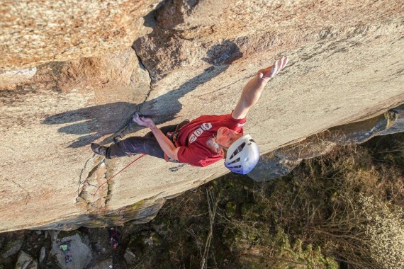 Plezanje 60-metrskega raztežaja v plezališču Hallinden.