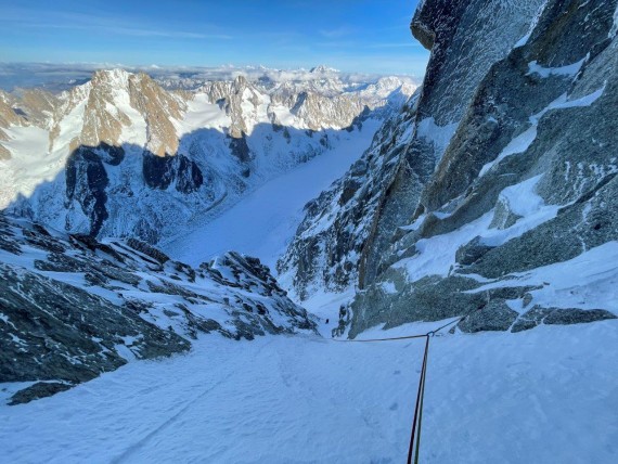 - Voie Contamine + Boeuf-Sara Couloir (Aiguille du Peigne), TD, III, M4, 350 m: Anja Petek