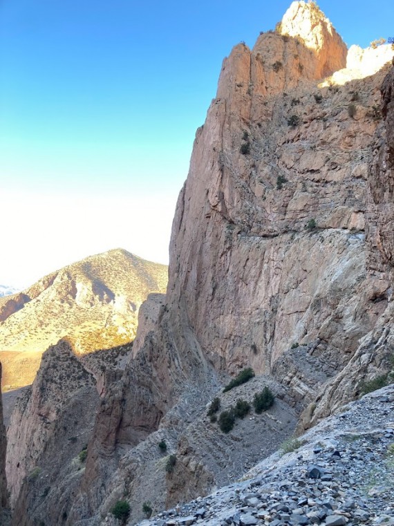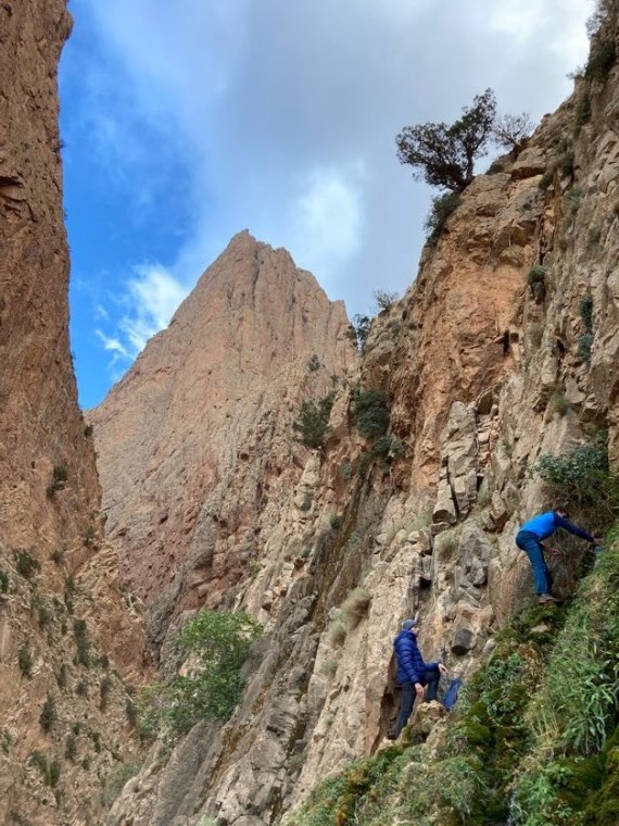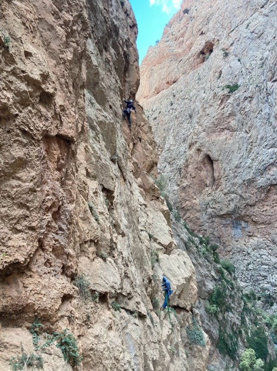1. in 2. novembra smo prvič otipali tamkajšne stene. V steni Ifriga smo splezali klasiki Classe Montagne Epinal (6c+, 250 m) in Belle et Berbere (6b+, 320 m). Ker telefon med kanjoni ne lovi in GRS-ja tam ne poznajo je, zaradi primera nesreče, pametno, da naveze plezajo v isti steni. Sledil je dan počitka, ki sta ga Gregor in Matevž izkoristila za raziskovanje zahtevnih sestopov, ki potekajo po ozkih kanjonih in pogosto zahtevajo plezanje ali spust po vrvi. V temi pa lahko predstavljajo celo večji izziv kot preplezana smer.