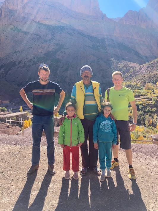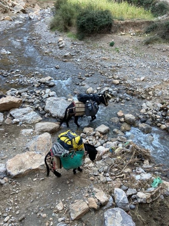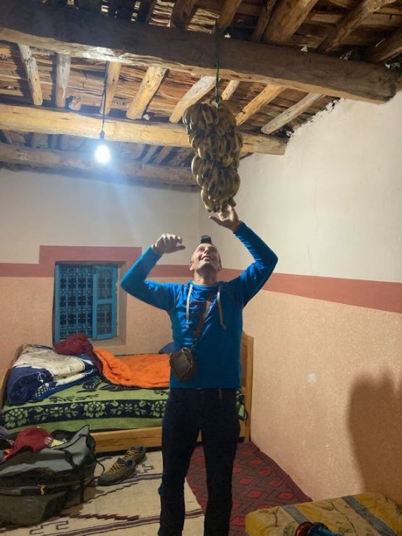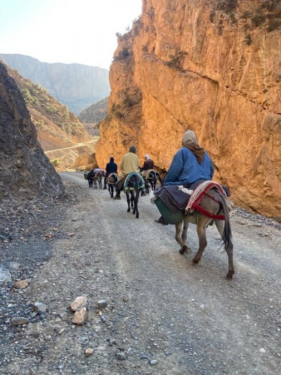 V Marakešu, kamor smo prileteli 30. oktobra, se nismo zadrževali in se že naslednji dan zjutraj s taksijem odpeljali proti vasi Zaouia Ahansal. Tam se cesta konča, zato smo obleke, hrano in plezalno opremo naložili na mule ter lastne hrbte in po dveh urah hoje prispeli v vas Taghia, kjer nas je ob večerji prijazno sprejel gostitelj Mohamed Rezki Ben Youssef s svojo družino.