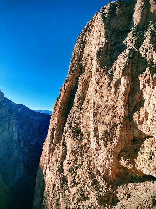 Po dnevu počitka smo se odpravili globje v kanjon in v isti steni preplezali še smeri Trompetenkaefer (7a+, 320 m), Canyon Apache (6c, 280 m) in L'allumeur de Reves Berberes (6c, 320 m). Navpične stene zahtevajo konstantno plezanje in težave od vstopa do vrha smeri.