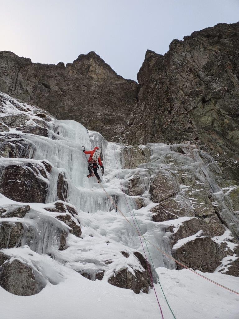 - Jakob Skvarča: Izbira in načrtovanje smeri v zimskih razmerah nikoli ni lahko, še posebej če se odpravljaš na neznano lokacijo, kjer še nisi bil. Ko se v neko tuje gorstvo podajaš prvikrat, ne poznaš karakteristik tamkajšnje kamnine, razsežnosti dostopov in sestopov, možnosti umikov po urejenih ali neurejenih spustih po vrvi, zato je veliko stvari neznanka. Seveda se lahko o marsičem predhodno pozanimaš; tudi o preteklem vremenskem obdobju, o količini snega in celo v kakšnem agregatnem stanju ga lahko pričakuješ. Prav to nepoznavanje nekaterih dejavnikov, odhod v neznano in srčno pričakovanje dobrih razpletov pa doprinesejo k alpinizmu pomembno in še kako potrebno noto raziskovanja ter pustolovščine. Prav to smo dobili v Tatrah! Četudi smo se morali ogniti načrtovanim bivakom v stenah, nam krajše smeri niso prav nič prizanašale. Nepredelan sneg, nizke temperature in krajši dnevi kot doma so poskrbeli, da je bilo plezanje še intenzivnejše in bolj napeto. Prednost krajših smeri in zgodnjih prihodov v kočo pa smo nekateri bolj drugi manj izkoristili za prijetno druženje z ostalimi, za katerega bi bili recimo v Francoskih Alpah zaradi večdnevnih tur prikrajšani. Tudi to je del alpinizma! Tabor je z izjemno zanimivo lokacijo poskrbel za pravo alpinistično-plezalno dozo. Hvala Martinu in Nejcu za sproščeno in odgovorno vodenje ter KA za podporo.