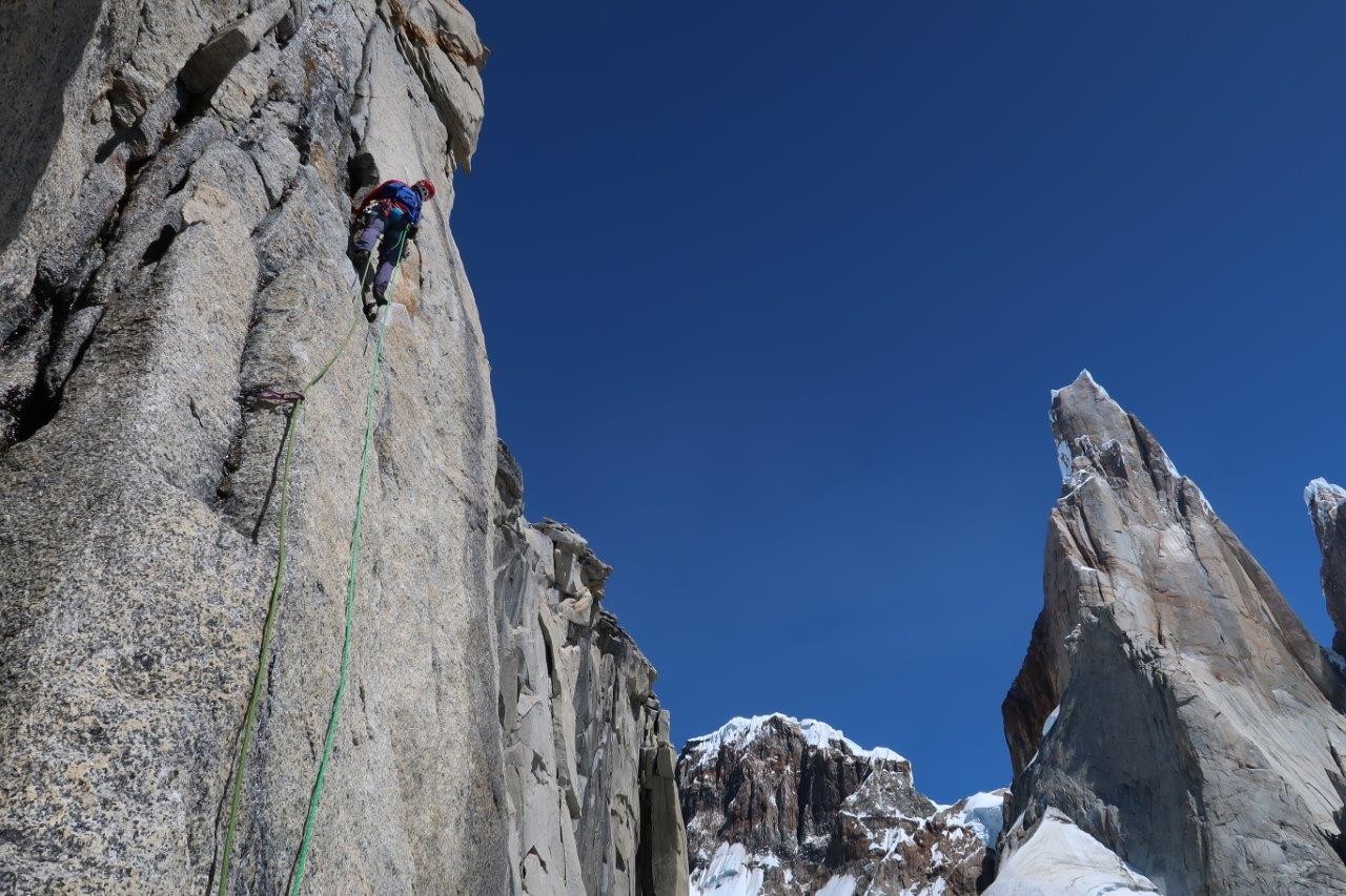 Tokratni cilj v Patagoniji je bil začrtan že lansko sezono, ko sva začela odlično prvenstveno smer v južnem razu Poincenota. Misli so nama celo leto uhajale nazaj v strme poči in gladke prehode v tej estetski liniji in oba sva se močno veselila ponovne izkušnje. Začelo se je zelo optimistično, saj sva že na letališču vedela, da se začenja okno lepega vremena in še isti dan prihoda v El Chalten spakirala opremo ter se navsezgodaj naslednje jutro podala na dostop pod stene. Večina drugih plezalcev je že plezalo, nekateri pa so po neuspešnih poizkusih že sestopali nazaj v civilizacijo. Odločila sva se za plezanje smeri Frader Pisafe v El Mochu, ki je poleg lepega plezanja služila tudi kot ogledna točka za nekoliko začinjen dostop do najinega glavnega cilja, v območju katerega se je lansko sezono zgodil večji podor.