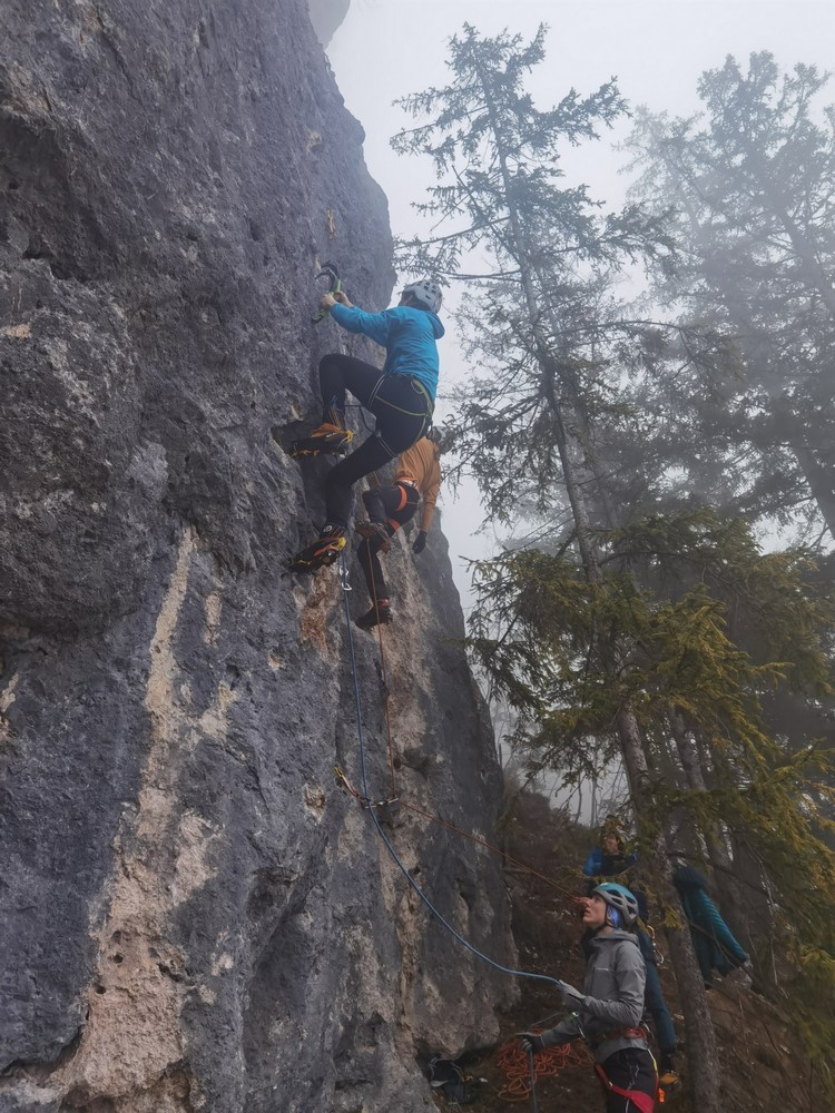 - Jan Meh: Zimski tabor v Trenti je bil obarvan s toplimi temperaturami in deževnim vremenom, tako da smo že od začetka rahlo dvomili o naših ciljih. Nekateri smo/ so še imeli nekaj sreče, tako da smo naleteli na razmere in lahko nekaj zlezli. Smo gazili, obračali, spoznavali primorske stene, pametno odločali in sprejemali skupne odločitve v kočljivih situacijah. Zahvala za organizacijo KA PZS, Andreju Ježu in Gregi Tristanu za odlično nastanitev in spodbudno vzdušje kljub slabšim vremenskim razmeram.