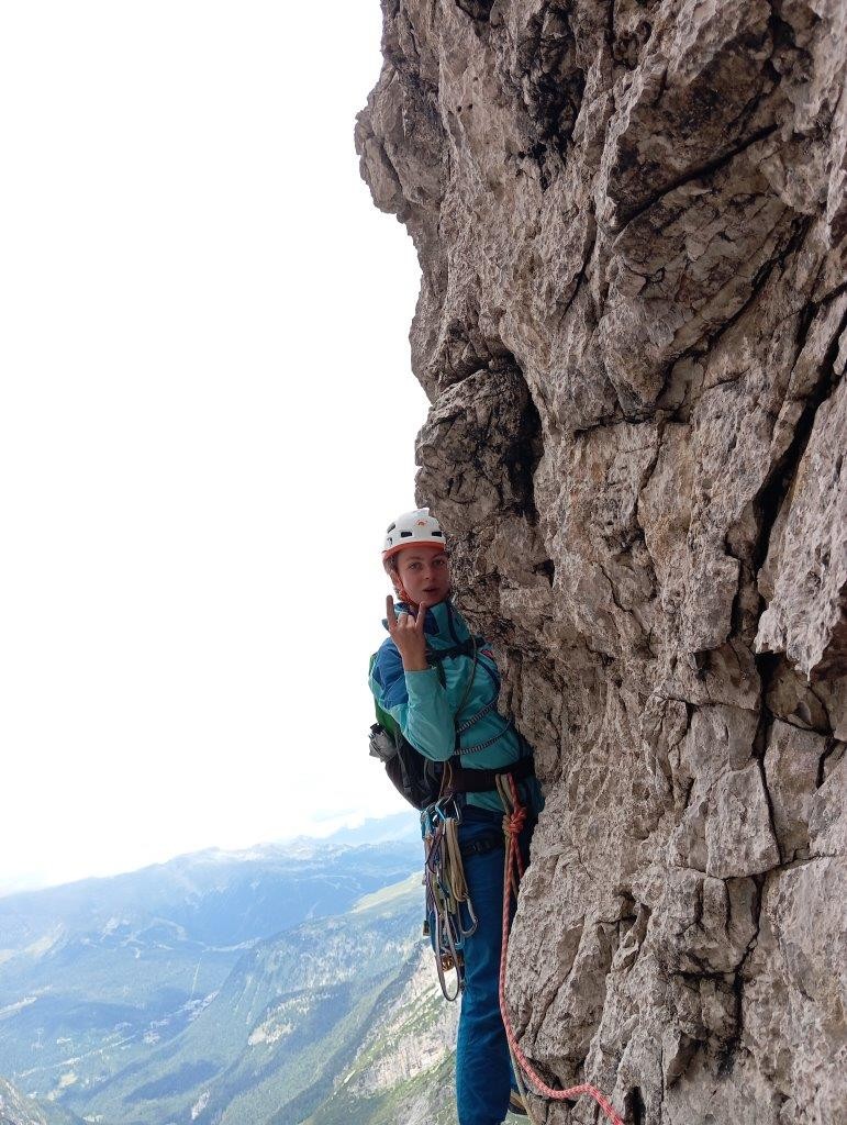 - Alina Ledinek: Tabor je bil odlična priložnost, da sem se prvič spoznala s plezanjem v Dolomitih, kateri so znani po svojih strmih stenah, resni plezariji in pa vrhunski skali. Ponudili so vse to in še več. Uživali smo v vertikalnem plesu. Novo pridobljene izkušnje bodo botrovale k moji nadaljnji alpinistični poti. Žiga in Matija sta zares dobra motivatorja, hvala! Bili smo prava druščina! Zahvalila bi se tudi KA PZS, da nam omogoča takšna doživetja. Juhej!