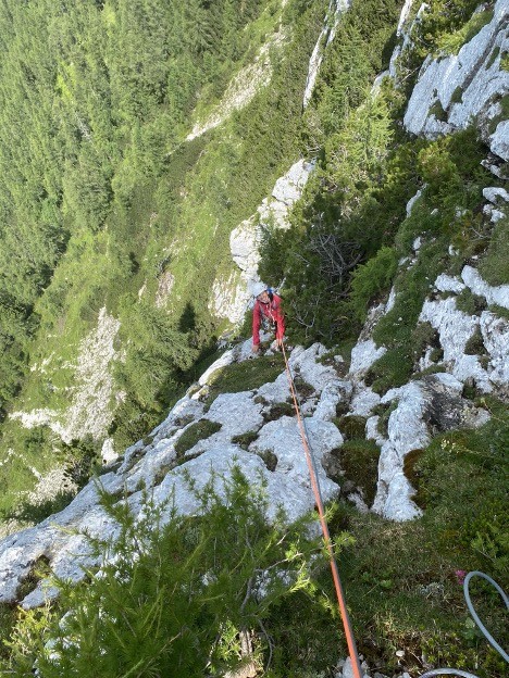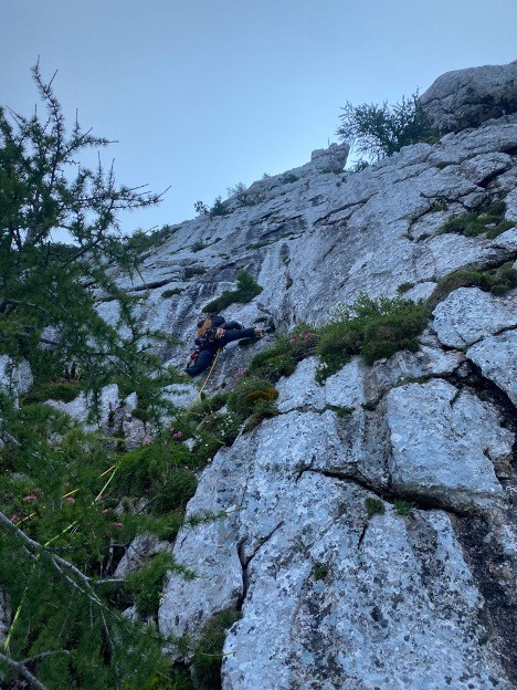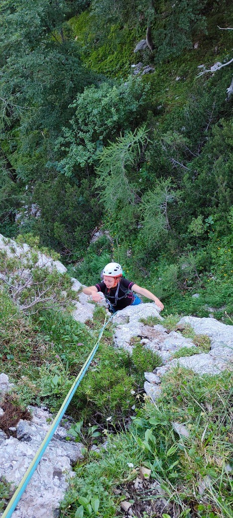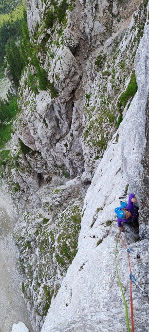 - Polona Lamut: Tabor je potekal na čudoviti Klemenči jami v družbi deklet s podobnimi interesi, zato sem se počutila odlično. Prvi dan nama je s soplezalko napredovanje žal preprečil moker in sluzast kamin, drugi dan pa smo preplezale Kosmato smer in se dodobra prepričale, zakaj nosi takšno ime. Gibanje po ruševju mi je od nedelje naprej bolj domače, kar je nedvomno koristna izkušnja. Sara nam je z zelo zanimivim plezalno-potopisnim predavanjem o Madagaskarju razširila obzorja, zato je tudi deževno popoldne hitro minilo. Hvaležna sem bolj izkušenim puncam za prenos znanja in Saši ter KA PZS za dobro organiziran tabor. Pohvalo si zasluži tudi oskrbniška ekipa za odlično hrano in vzdušje na koči.