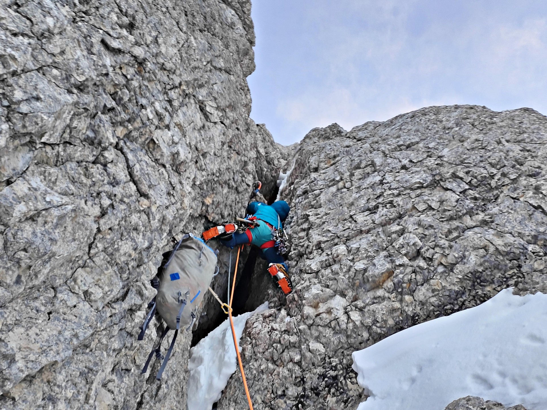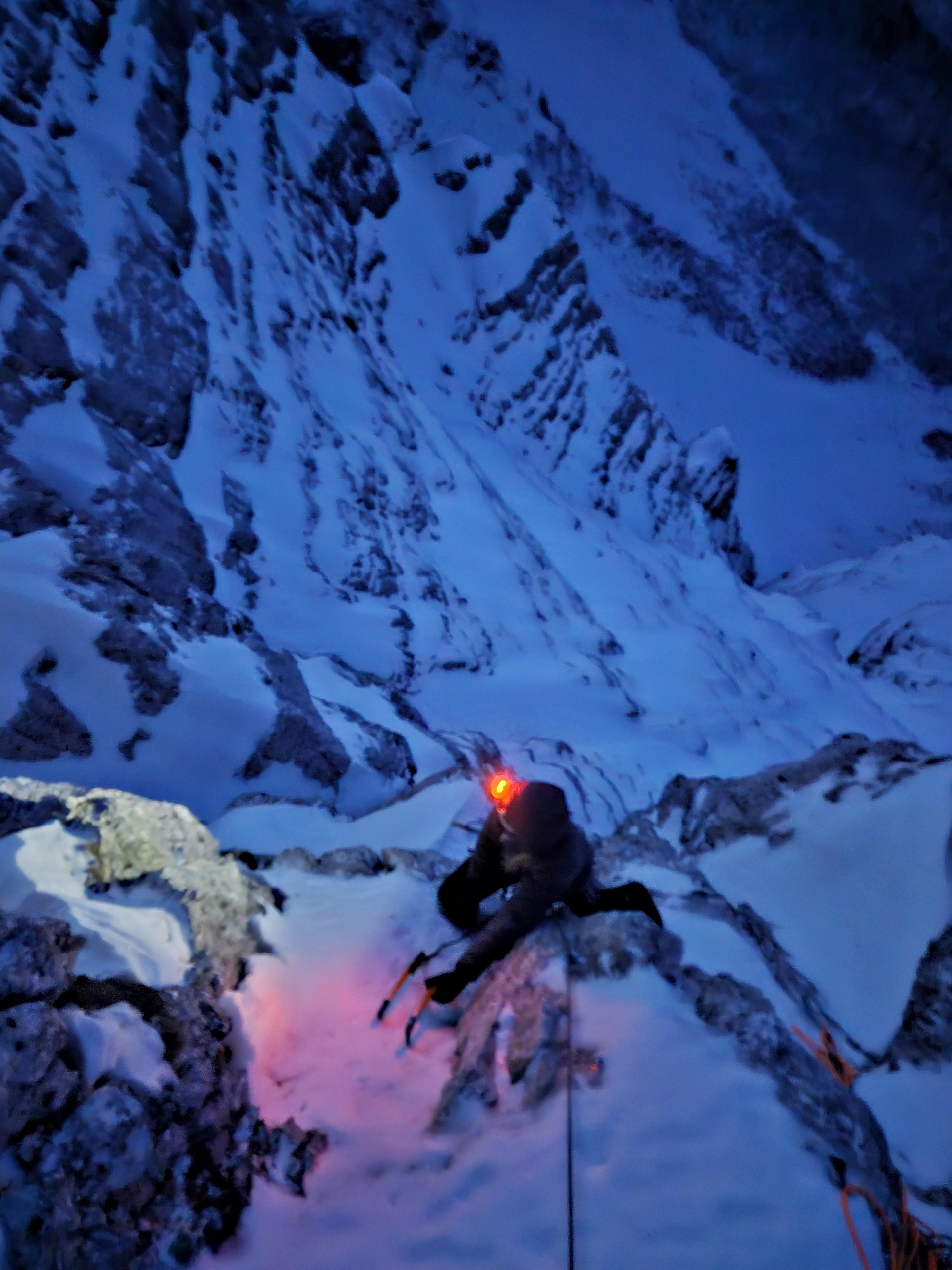 "Maratonski" vzpon na zimski Špik, Škrlatico in Triglav preko Skalaških smeri v enem zamahu.