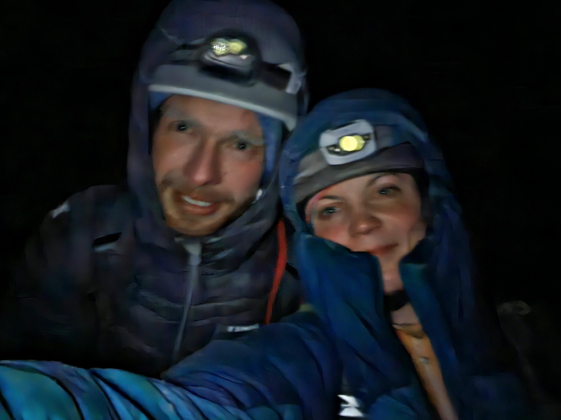 Zaradi nepredelanega snega izmučena prigaziva do bivaka v 7 urah. Ta del trilogije je v naju naselil največ dvomov glede nadaljevanja. Vse je bilo prepuščeno najini želji. Ali si tega dovolj želiva.