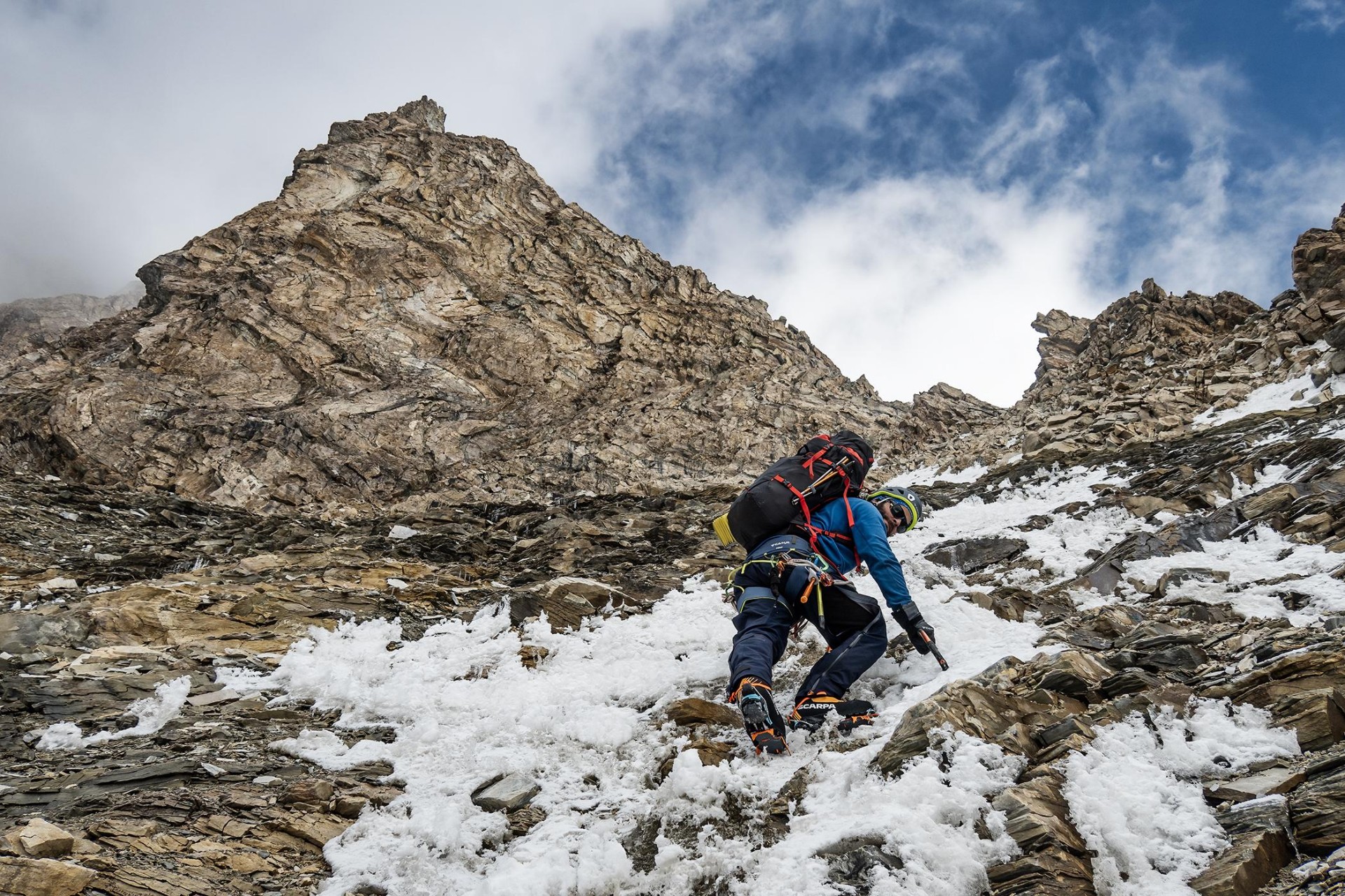 Ves ta dramatičen živalski vložek je seveda občutno vplival na naše plezanje. Zjutraj smo s čakanjem zapravili najbolj dragocen čas, ko je imel sneg še nekaj skorje, kar bi pomenilo precejšen prihranek energije, ki je šla posledično v utrujajoče gaženje. Poleg tega smo se ves čas umikali padajočemu kamenju in plezali izven idealne linije vzpona. Prvotno smo se nadejali, da bomo sredi dopoldneva dosegli greben, po katerem so na vrh splezali prvopristopniki. Na grebenu smo se znašli šele okrog enih popoldne in z vprašanji drug drugemu merili dvome v smiselnost nadaljevanja. Vsi smo porabili več energije, kot smo pričakovali, nadaljevanje po razu pa je bilo strmo in ledeno. Čeprav so nas z juga zagrinjali nevihtni oblaki, je prevladalo mnenje, da je svetlega dela dneva še dovolj in velja poskusiti splezati zadnjih tristo višinskih metrov. Res, ko sem izgovoril tristo metrov, sem nehote pomislil, da je doma to lagoden enourni vzpon. Po strmem in ledenem razu je šlo sprva počasi, ker je bil led krhek, izpostavljenost pa občutna. Po treh raztežajih se je teren nekoliko položil, sneženje pa je naš razgled omejilo na nekaj metrov. Ko smo priplezali na raz, je bilo videti, da je vrh blizu, med sneženjem pa se je za vsakim navideznim vrhom pojavila nova strmina, ki je izginjala v mlečno belino. Zadnja ura vzpona je bila zato dolga. Na vrh smo stopili ob petih popoldne ob močnem sneženju. Sestopali smo s spusti po vrvi. Dvakrat smo za spust skopali snežno gobo, ker druge možnosti ni bilo. Nižje v ozebniku pa smo se pretežno spuščali na sistem Abalakov. Po dvajsetih dolgih spustih smo malo čez polnoč dosegli bivak. Jaz sem v trenutku zaspal, Manu, ki je prevzel odgovornost za sestop, pa se je še nekaj časa pogovarjal z namišljenimi obiskovalci. Osemnajsturna osredotočenost in utrujenost ga je zavedla v haluciniranje.