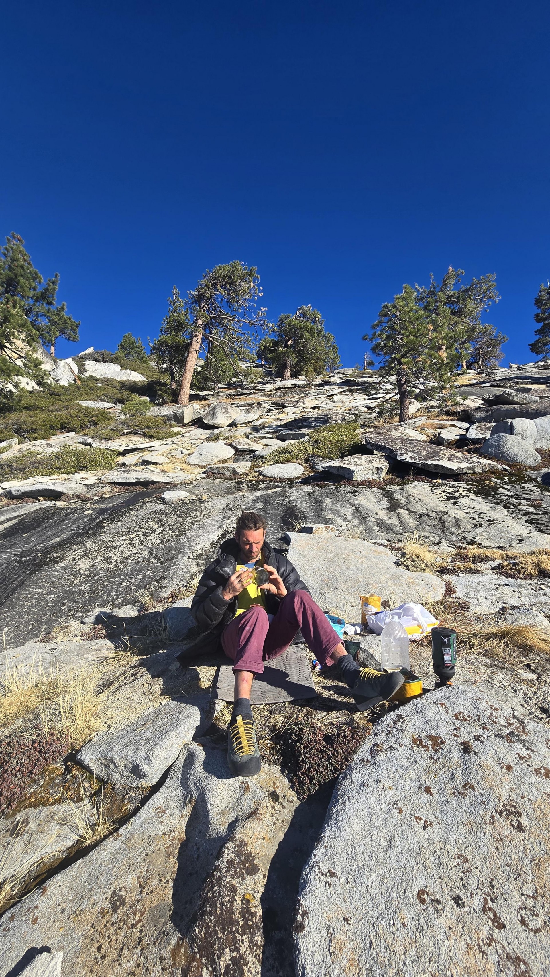 Naslednje jutro se jima ni mudilo, čakali so ju še zadnji raztežaji, ki so znova zahtevali nekaj notranjega miru, zadnji večer na vrhu El Capitana po štirih dneh vzpona pa je bil zanju najlepši, zaznamovan z dobro večerjo, udobnim bivakom in zadnjimi požirki rojstnodnevnega ruma. "Po pravici je bilo najtežje držati glavo na pravem mestu. Marsikateri raztežaj je bil mentalno težek zaradi slabega varovanja in slabše kakovosti skale, zato sem kar nekajkrat moral na silo zbrisati dvome iz glave, da sem lahko nadaljeval. Seveda pa je bil najlepši trenutek, ko sem priplezal na polico Tower to the people, po uspešnem vzponu na pogled v Roof traverse. Od tu naprej sem tudi poznal smer, tako da je bilo za glavo lažje," plezanje po vrnitvi domov podoživlja 34-letni Celjan in doda: "Mnogi preplezajo prvi del smeri, se spustijo na tla in dostikrat na tleh tudi prespijo. Ko se vrnejo v smer, preplezajo ta del po vrveh in nadaljujejo s prostim vzponom. Nakateri celo poskušajo težje raztežaje s spustom preko smeri. Midva sva se brezkompromisno odločila za vzpon v štirih dneh plus dan za sestop. Gnalo naju je le dejstvo, da sva vedela, da sva smer sposobna preplezati prosto. Seveda pa je dobra energija pomagala pri sproščenosti, ki je tako zelo pomembna."