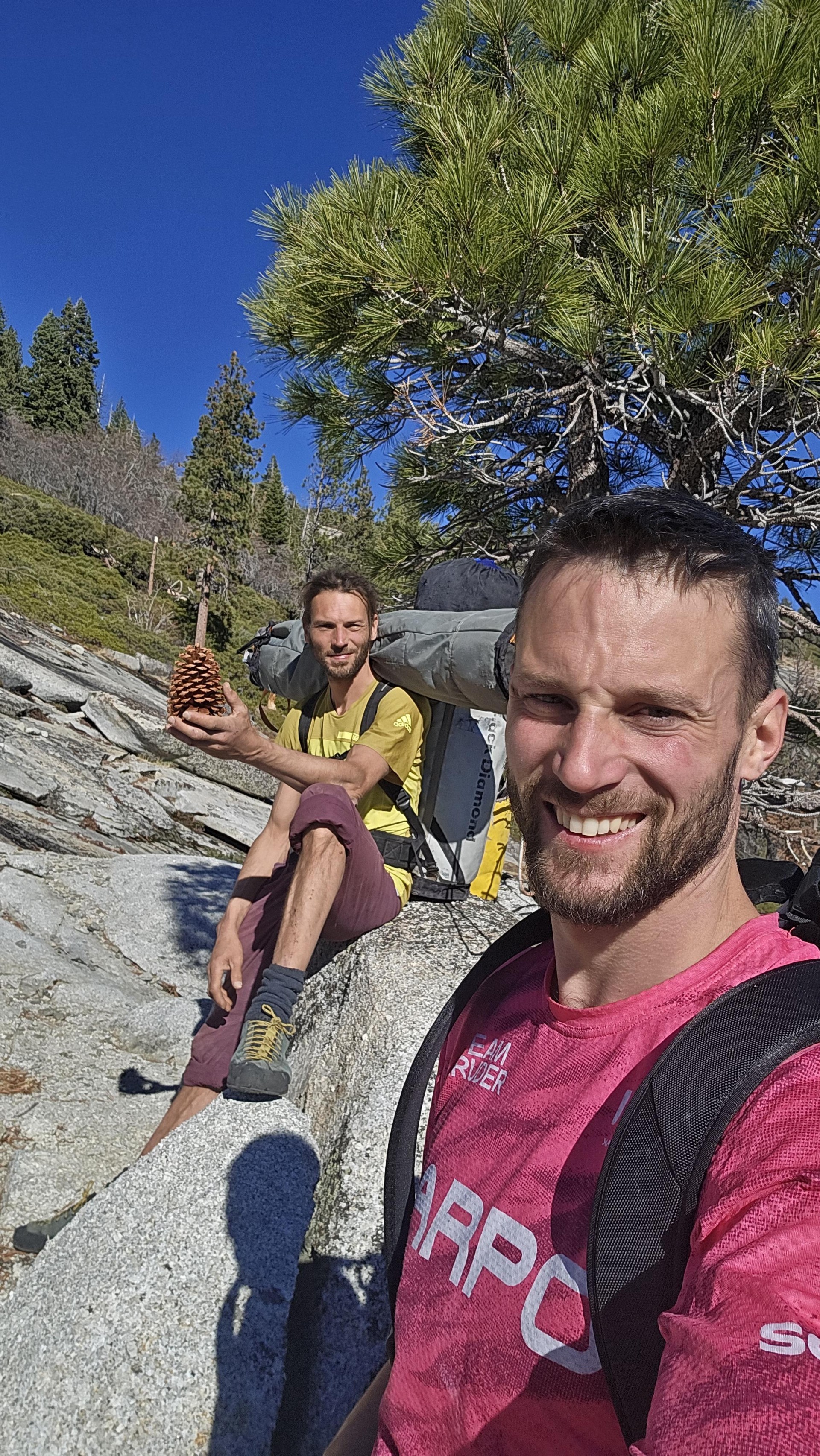 "Končno je napočil čas najinega glavnega projekta - El Corazon 5.13b v El Capitanu. Pripravila sva vso opremo, hrano in pijačo ter jo po statičnih vrveh zvlekla do Mamuth terraces. Po dnevu počitka sva v smer vstopila zelo zgodaj, da bi se izognila plezanju plošč na soncu. Hitro in uspešno sva napredovala do najinega baznega tabora (Mamuth terraces). Opreme nisva vzela zraven, saj sva se zvečer spustila nazaj in prespala na isti točki. Pred spustom sva hitro opravila še ostale lažje raztežaje, sam pa sem želel preplezati prvi težek raztežaj smeri še prvi dan. Sonce je otežilo moj poskus na pogled in tako sem po nekaj gibih že visel v pasu na enem redko zavrtanih svedrovcev v celi smeri. Vzel sem si nekaj časa, da sem natanko preučil ostale gibe in se spustil nazaj do sidrišča. Sonce je stopilo za obzorje, stena pa je še vedno sevala od vročine. V drugem poskusu so dobro naštudirani gibi le premagali razgret granit. Tako sem za svoj rojstni dan dobil darilo Beak flake," v poročilu spomine obuja Jernej Kruder (ŠPO PD Celje Matica), ki si je priplezal najlepše rojstnodnevno darilo: "Najtežje je bilo prepričati Dirka, da končno vstopiva v smer. Ni vedel, da petega praznujem, tako da sem bil zelo vesel, ko je privolil, da greva v smer ta dan. Tudi tisti rum je bil dosti slajši kot po navadi. In seveda vzpon v Beak flake, 17. raztežaj v smeri in tudi najtežji."