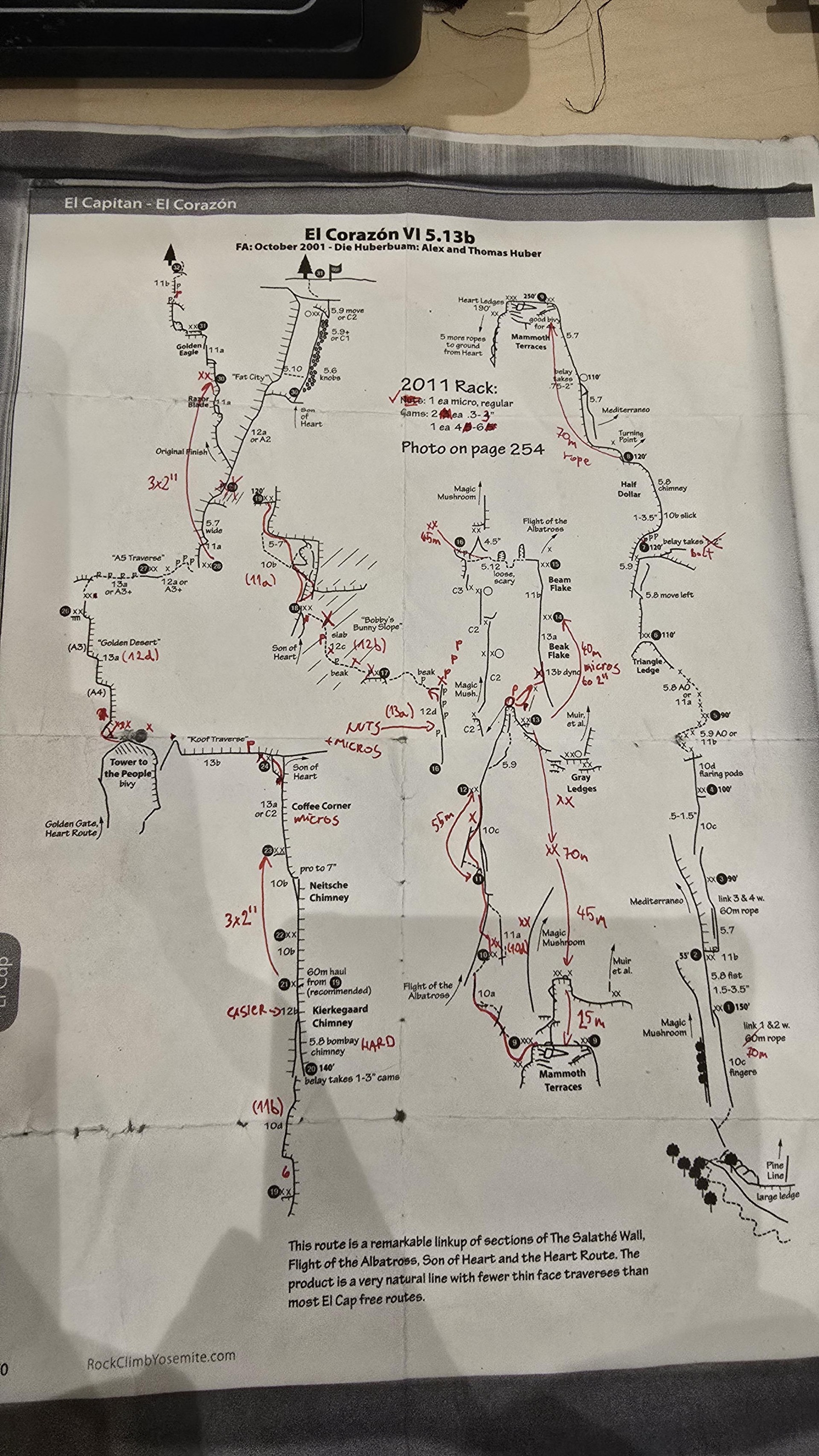 Slovensko-nemška naveza je v ZDA odpotovala 26. novembra in po nekaj zahtevnih smereh za "ogrevanje" sta v slavnem granitnem monolitu 5. decembra vstopila v znamenito smer El Corazon. Tisoč metrov dolgo smer sestavlja 32 raztežajev, dolgih od 20 do 60 metrov. Najzahtevnejša od teh, poimenovana Beak flake in Roof traverse, sta ocenjena z 8a po francoski oz. 5.13b po ameriški lestvici, trije imajo oceno 7c+ oz. 5.13a, pet 5.12 oz. sedmo stopnjo, preostali pa nižjo.