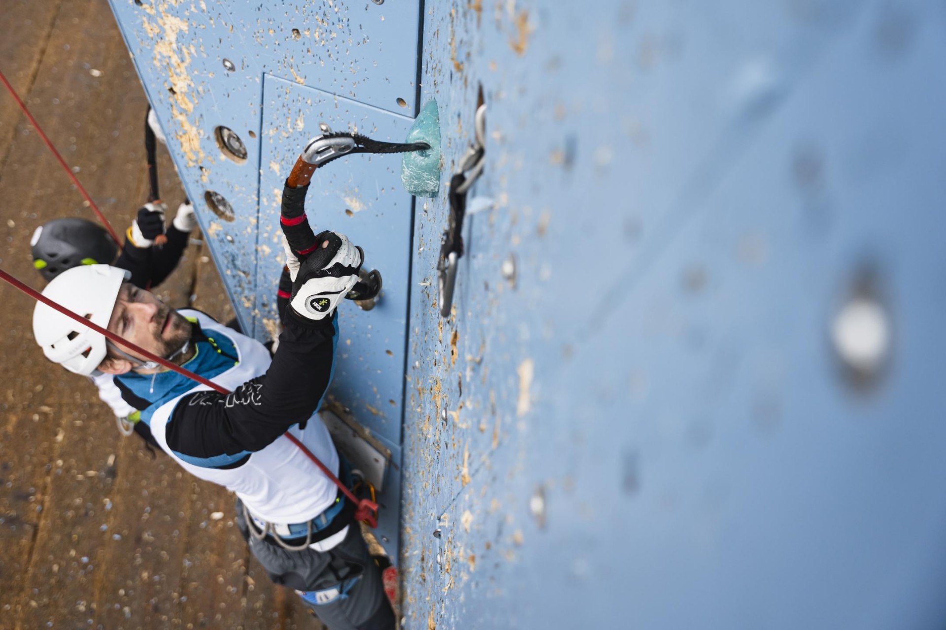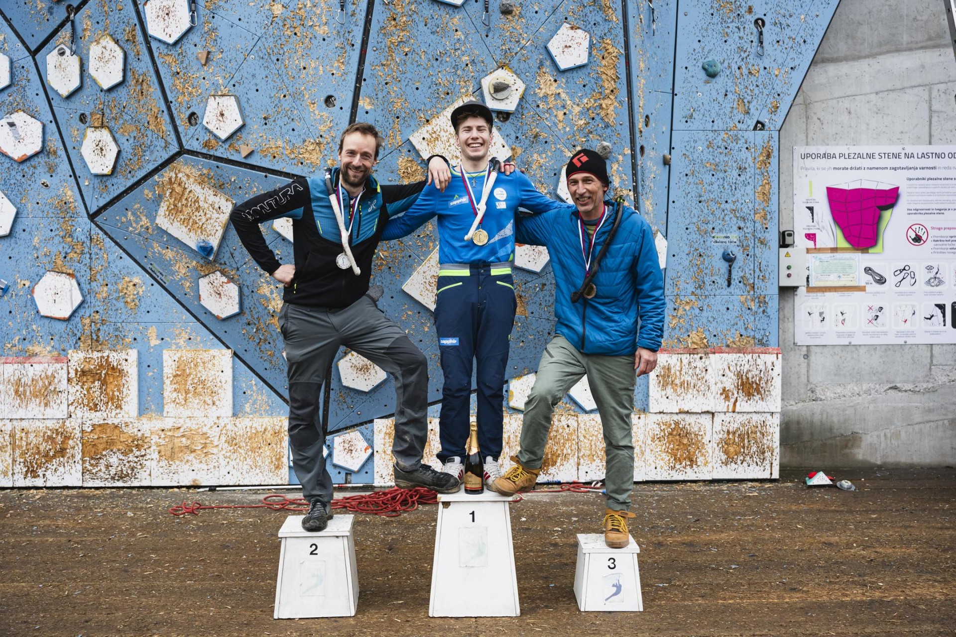 Sledili so nastopi moških tekmovalcev, ki so imeli ob precej zasoljeni postavitvi za svoj nastop le štiri minute in pol časa. V njihovi smeri je bil najselektivnejši gib na koncu glavnega dela smeri, selektiven pa je bil tudi čas, ki je nekaterim pretekel hitreje, kot bi si želeli. Pod sam vrh se je prvi povzpel Klemen Premrl (AO PD Tržič), zaustavil ga je pretek dovoljenega časa za plezanje, s svojim nastopom pa si je zagotovil tretje mesto. Marko Guna (AO PD Rašica) je naredil gib več, ob sicer izvrstnem času pa je izgubil cepin, kar mu je znova prineslo mesto državnega podprvaka. Gregor Šegel (AO PD Ljubljana-Matica) se je kot glavni favorit v steno podal kot zadnji in se povzpel še višje od Gune, s čimer je ohranil naslov državnega prvaka iz prejšnje sezone.