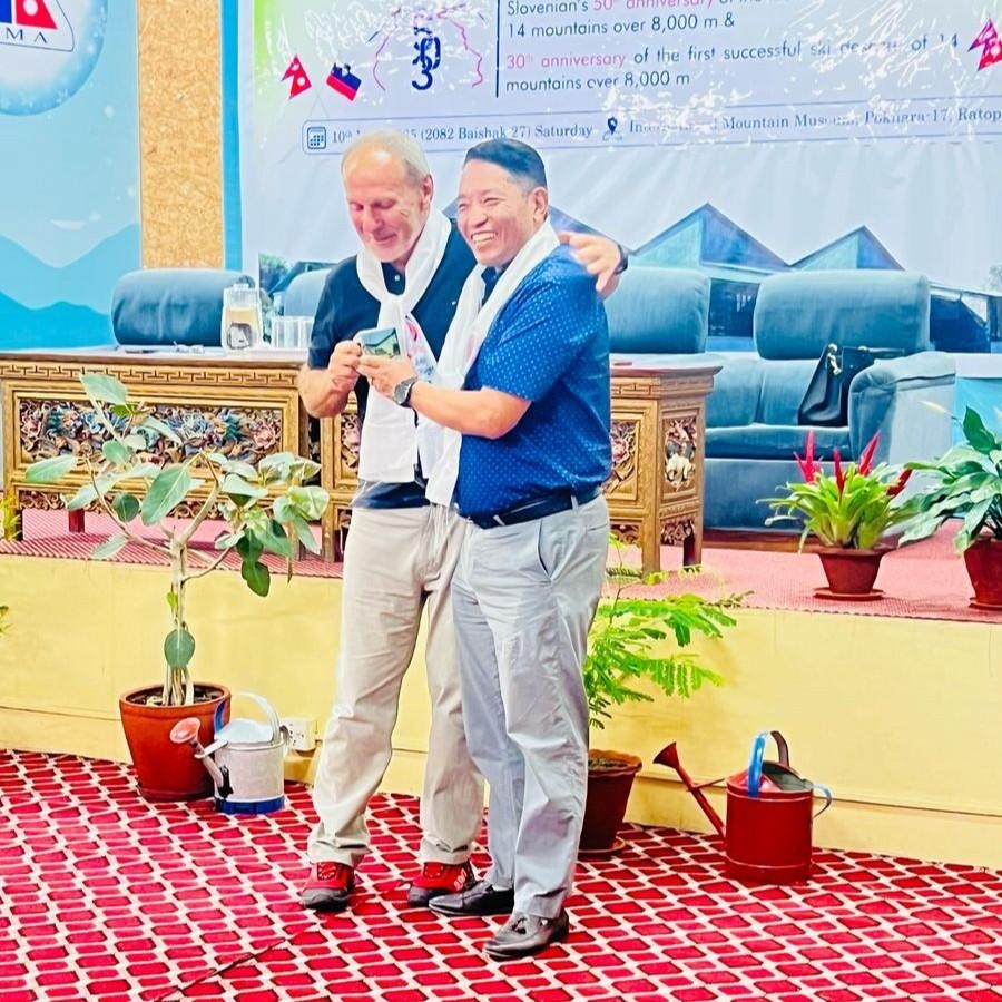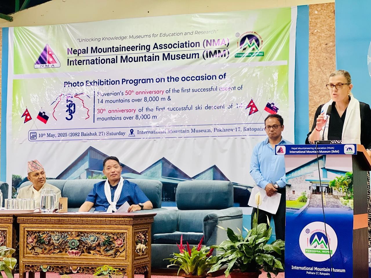 Ob vrnitvi smo se 10. maja 2025 ustavili v Mednarodnem gorskem muzeju v Pokhari, kjer smo v sodelovanju z vodstvom Planinske zveze Nepala in omenjenega muzeja pripravili priložnostno razstavo v počastitev zgoraj navedenega jubileja ter istočasno tudi 30. obletnice vzpona na Anapurno kot zadnjega slovenskega osemtisočaka, z vrha katerega sta Davo in Drejc Karničar tudi izvedla smučarski spust. Avtor spremnega besedila in fotografij na razstavi je Viki Grošelj, sam sem sodeloval pri oblikovanju in organizaciji postavitve, sicer pa je razstavo financirala Planinska zveza Slovenije.