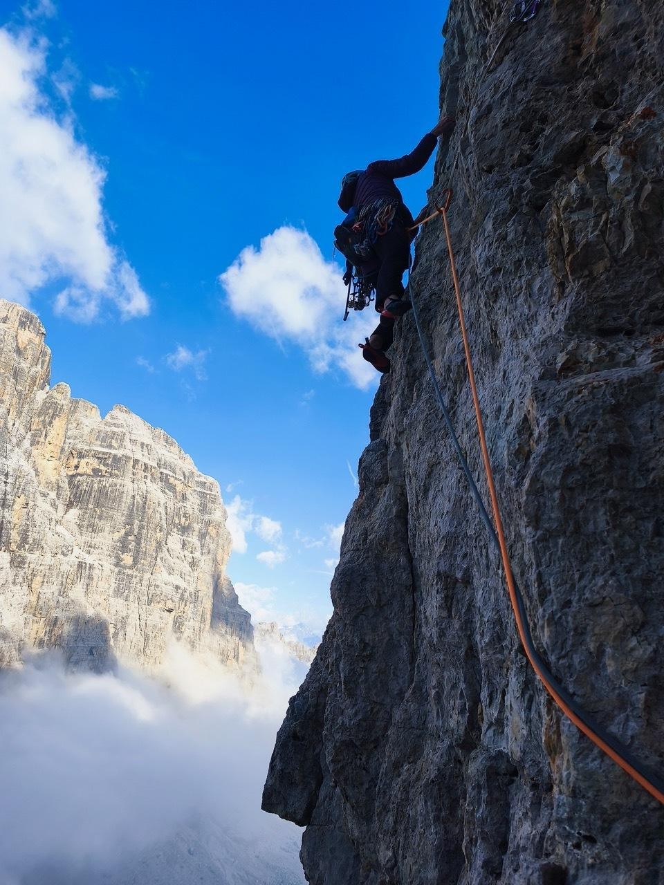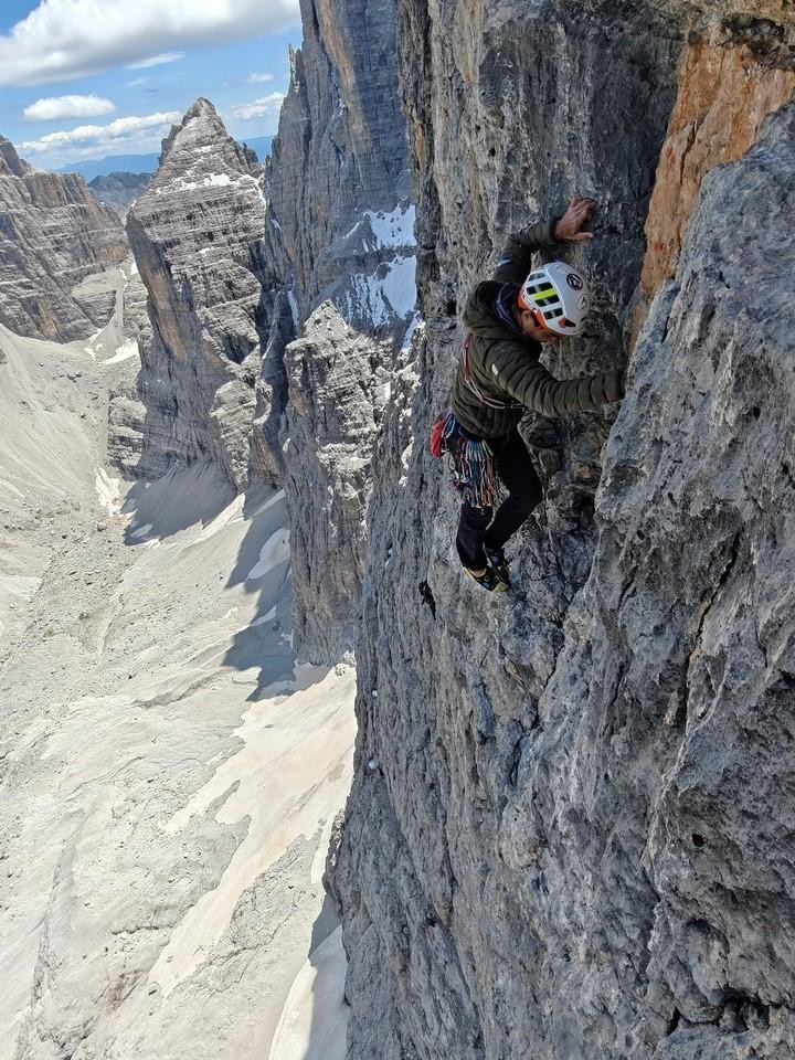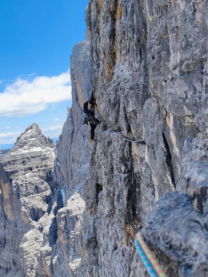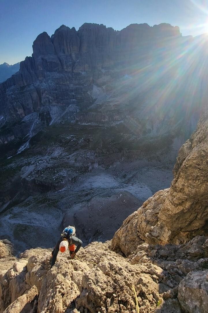 Oblačen, a lep dan. V stenah Brente je precej manj navez kot v bolj obleganih Dolomitih bližje Sloveniji. Prav ta tišina in odmaknjenost regije jo naredita še posebej privlačno. V stenah je opaziti tudi še ne preplezane logične linije, ki jih ni v novejšem plezalnem vodniku - področje je zagotovo vredno ponovnega obiska!