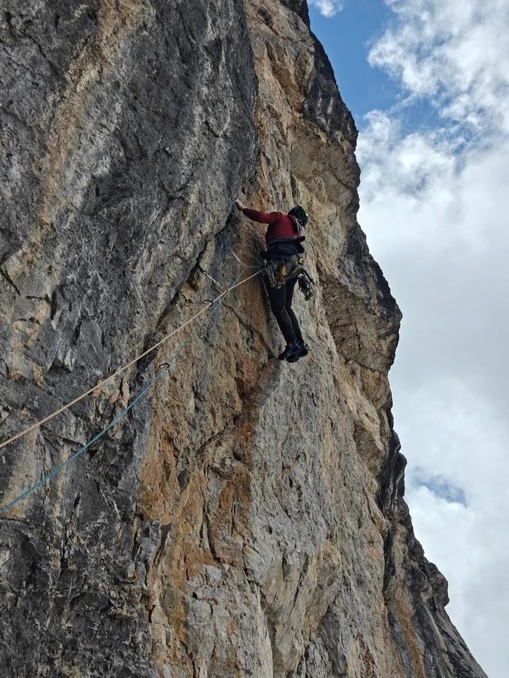 - Jaka Pagon, Matic Primožič: Via della Soddisfazione (vstopna var. IV+), V-VI, 380 m, 5,5 h