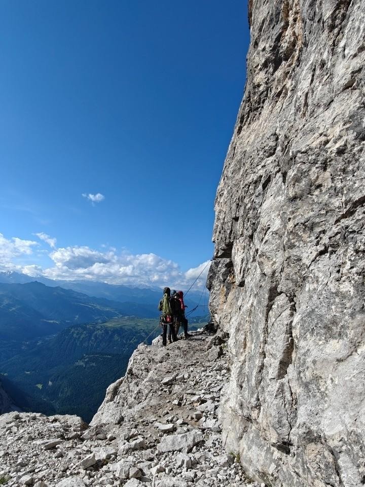Vsi uspešno preplezamo steno. V zadnjih raztežajih nas ujame ploha. Nekaj oddaljenih gromov in statična elektrika na vrhu nas podžge, da pohitimo s sestopom. Do večerje so vse naveze nazaj v koči. Na večer se zjasni, tako da uspemo posušiti vso mokro opremo. Pred večerjo se Jaka odpravi na večerni tek do Doss di Dalum in nazaj.