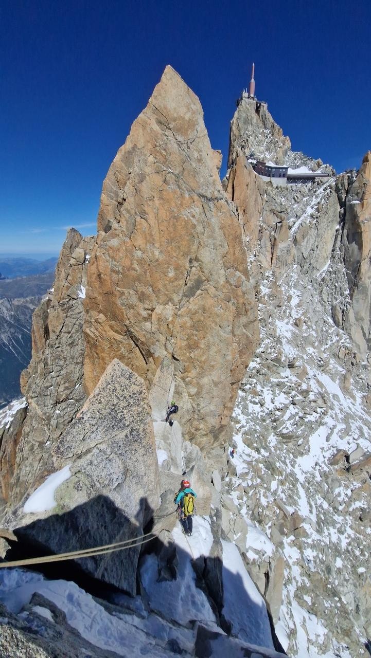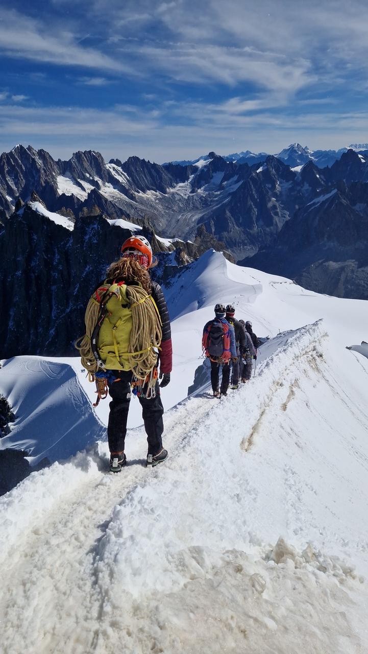 - 7. september: Aiguille du Midi; smer Arete des Cosmiques, II (AD 3), 350 m, 4 ure, Rebeka Čadež