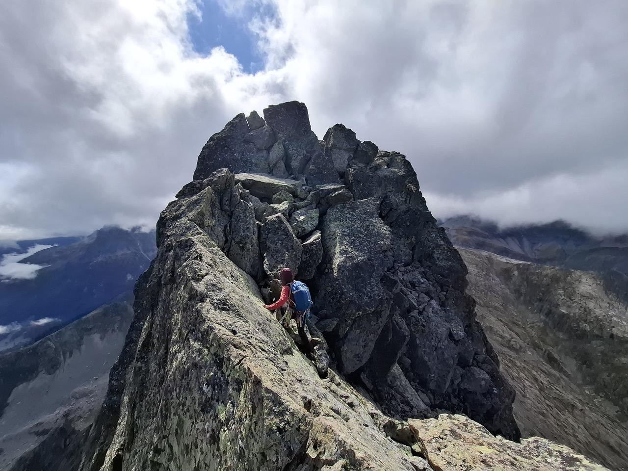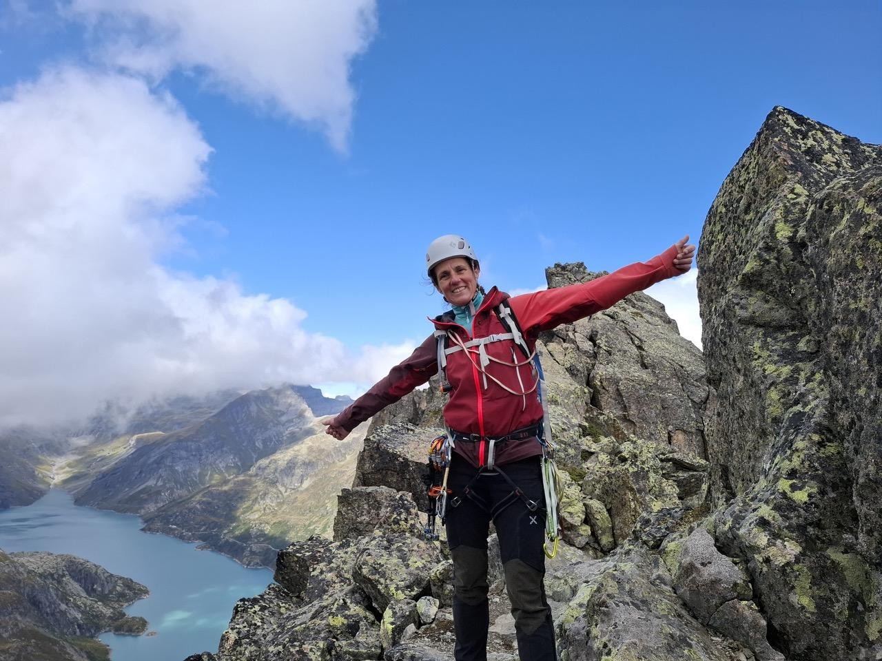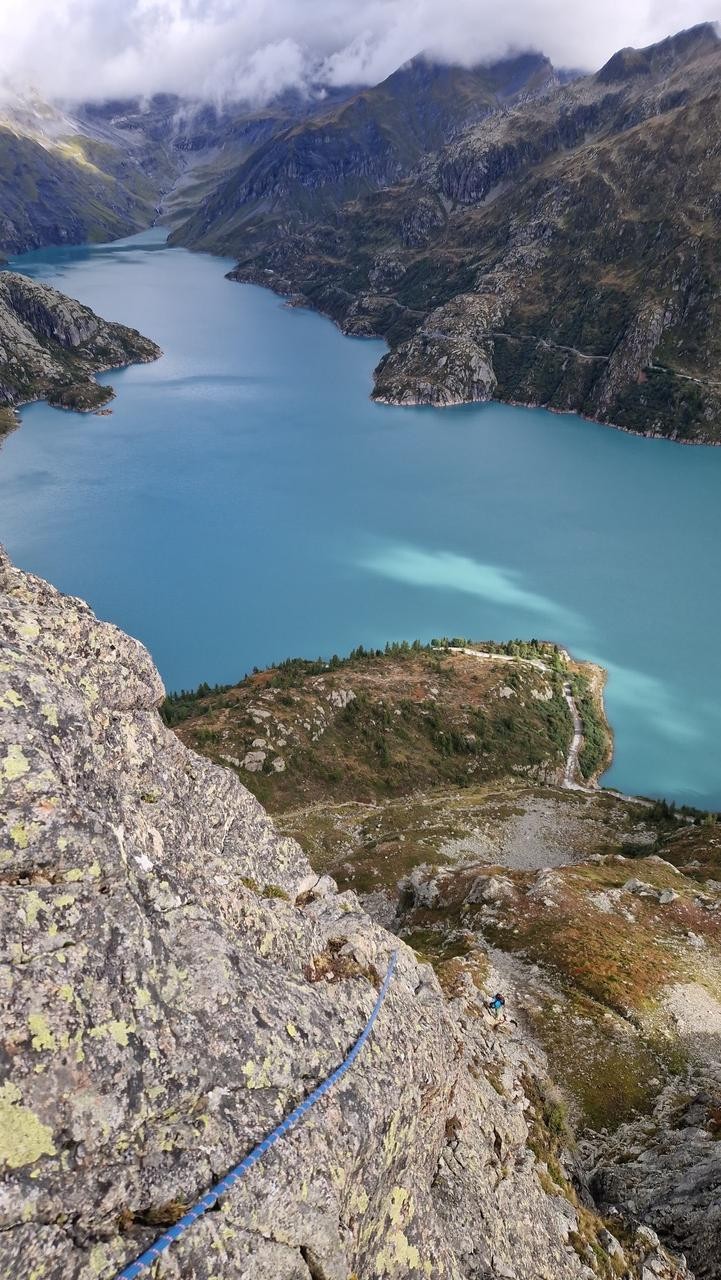 Tina pa se je s Anne Flechsig iz Švice odpravila do bližnjega jeza Emosson, kjer sta preplezali smer Aqua koncert na Aiguille du Van, ki v spodnjem delu še ni bila suha, zato je bila malo težja od ocene, nudila pa je čudovite razglede na jez in okoliške vrhove. Tam sta nadaljevali v izpostavljeno grebensko prečenje Perronsov, ki ponudi kar nekaj plezanja, zelo izpostavljenega gibanja po grebenu ter vmesnih abzajlov (sidrišča za abzajl so navrtana). Sledil je še dolg sestop čez čudovito dolino Veudale, kjer so se iz vseh strani stekali potočki in se med skalami nabirali tolmunčki.