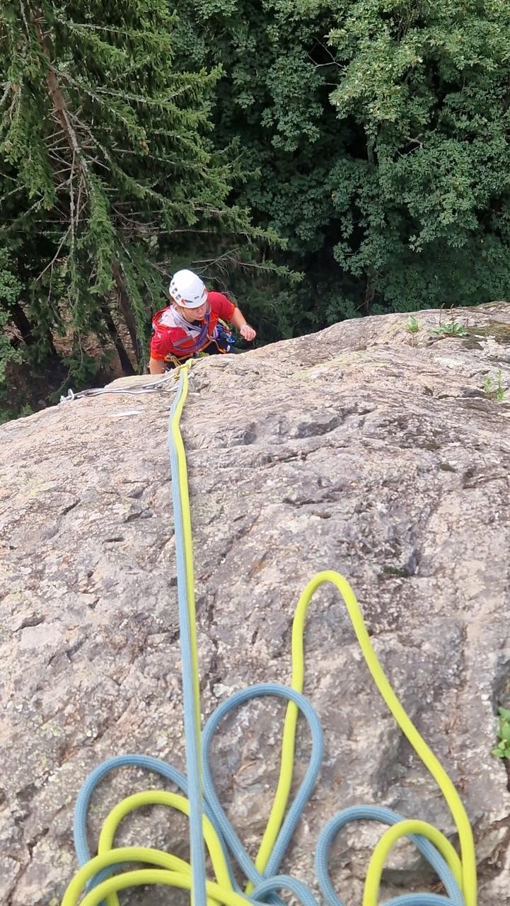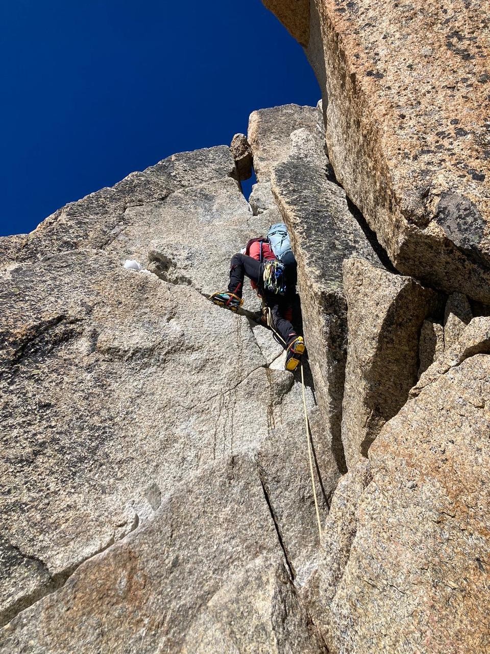 V četrtek se ločiva. Rebeka se spet odpelje z gondolo na Midi, kjer je s Saro Pirnat iz Srbije splezala Aiguille d'Entrèves Traverse. Zadnja Hellbrunner žičnica je peljala ob 14. uri, zato sta prespali na koči Torino. V petek sta se vrnili v dolino in splezali še dve krajši večraztežajni smeri v Vallorcine.