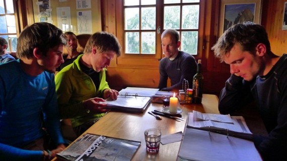 Premik pod Piz Badil je popravil nekoliko skrhano motivacijo in okrepil željo po plezanju. V koči je bil ob ugodni vremenski napovedi značilen plezalen vrvež, ki je spodbudil plezalne ambicije. Visoka stena in razmeroma kompleksen sestop sta preprečila bolj ali manj izražene želje po povezavi dveh smeri prav na vrh v enem dnevu. Zvečer smo bili vsi zadovoljni z doživetim. Naslednji dan smo si izbrali nekoliko manj zahtevne smeri. Očitno je bilo, da sta dva plezalna dneva terjala več mentalne energije kot je bilo pričakovano.