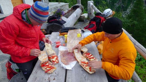 Nedelja: Po zboru ob 13. uri smo nakupili hrano za prihajajoče dni in se odpravili proti Val di Mellu, kjer smo kljub manjšemu zapletu dobili nastanitev in se pripravili za ture, ki so nas čakale naslednji dan.