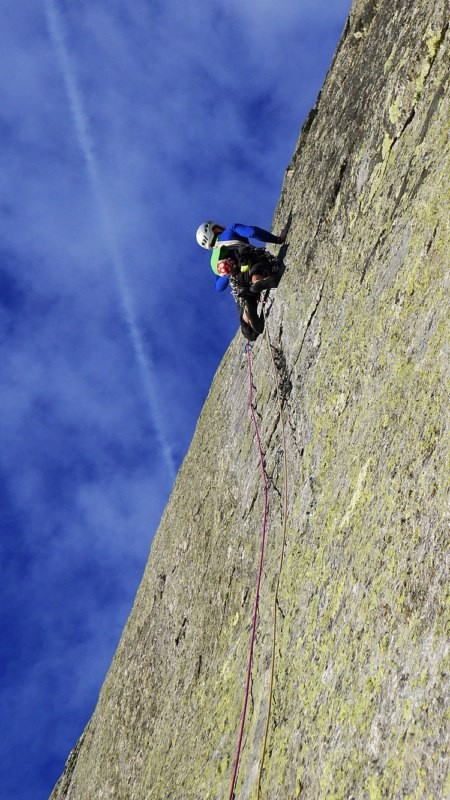 Plezanje po ploščah je že prvi plezalni dan vse dobro preizkusilo v obladovanju ravnotežja in zaupanju trenju. Udarno navezo Luka & Luka so presenetili »dinamični gibi v položnih ploščah«, naša trojna naveza je najprej zgrešila podrt vstop v smer, potem pa neodločno nadaljevala po zahtevnejši smeri od izbrane in obrnila tri raztežaje pod vrhom smeri kjer nas je mokro nadaljevanje in pomanjkanje motivacije prepričalo v spust; najbolj uspešna pa sta bila Luka in Nejc, ki sta preudarno izbrala smer in jo tudi preplezala tako kot sta želela. Za sprejetje številčne ocene plezalnih težav v granitnih ploščah je še vedno potrebno vsaj nekaj dni takega specifičnega plezanja - dandanes verjetno kakšen dan več kot v časih, ko previsi še niso bili tako popularni.