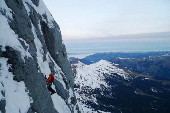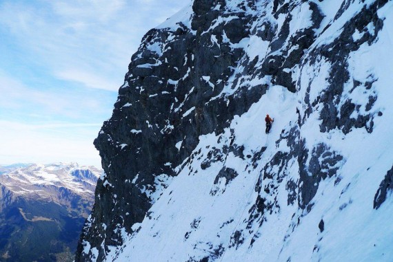 Klasično (Heckmair, Harrer, Kasparek, Vorg ) smer v Eigerju (VI, M6, 6a, 1800 m) smo v treh dneh od 17. do 19. 11. 2012 prosto preplezali Luka Lindič, Tadej Krišelj in Luka Krajnc.